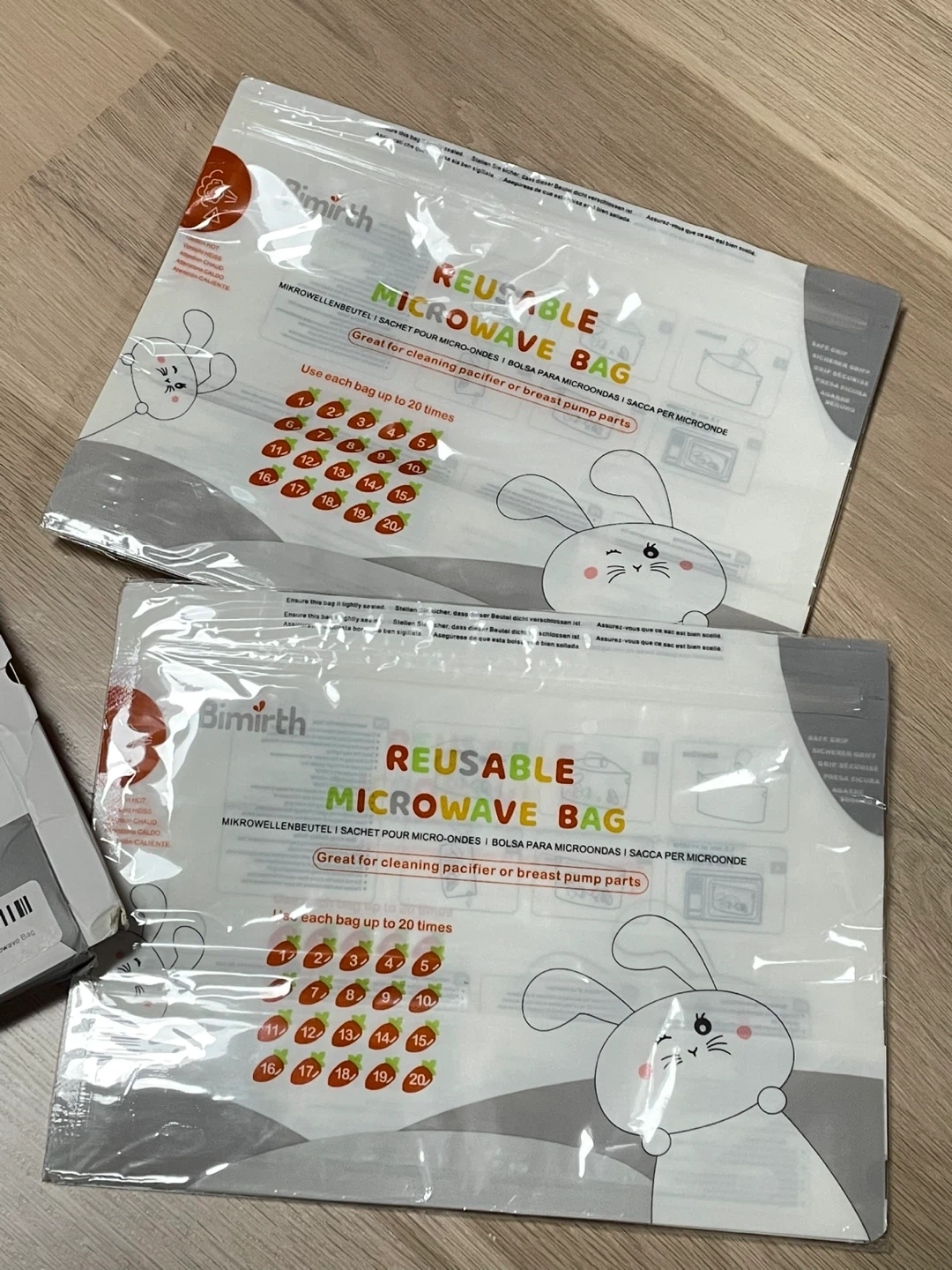 These Bimirth reusable microwave bags are great for cleaning pacifier or breast pump parts when you’re travelling. Each bag can be used up to 20 times. BPA free. I’ve opened the pack but didn’t need so many, there are probably around 12 or 13 bags left.