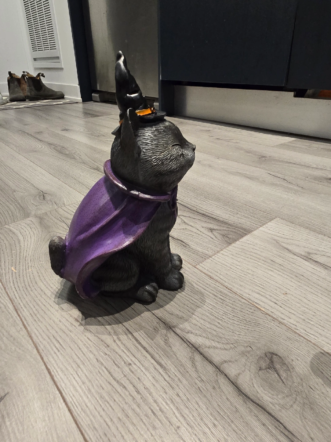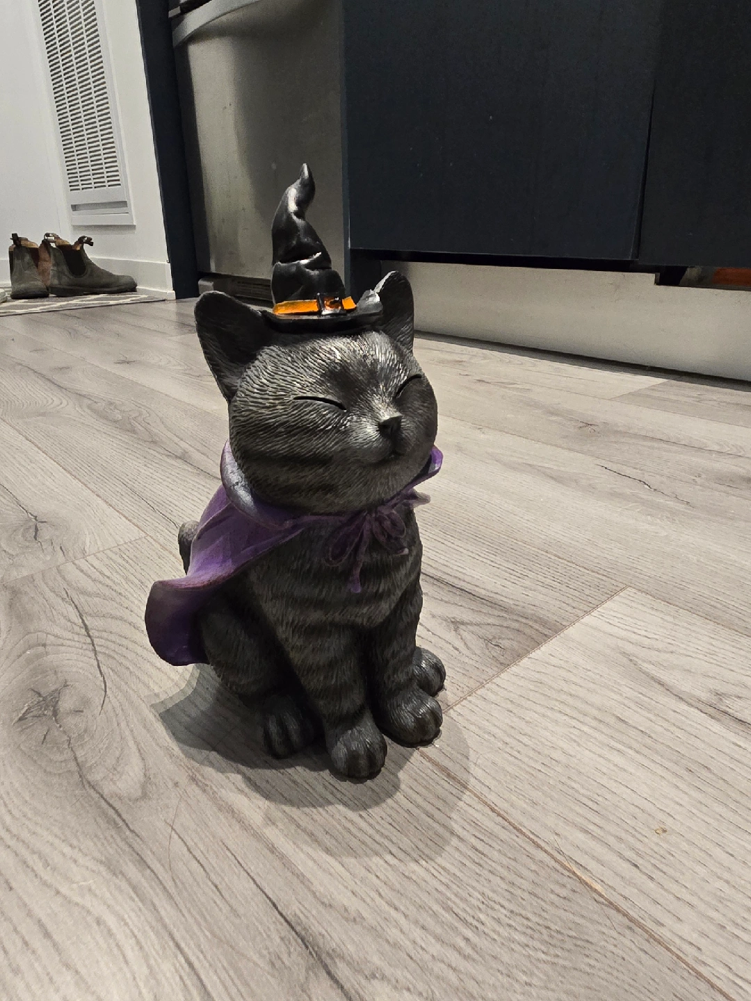 Buy & SellHalloween Black Cat FigurineHalloween Black Cat Figurine$10Cute black cat figurine dressed up for Halloween with a witch hat and cape! It's in great condition, ready to add some spooky charm to your homeConditionNewDimensions12cm×12cm×20cmWHERE TO MEETCheck LocationView MapSELLERverifiedCatherineErin Mills893 reviews0 chats·0 favorites·11 viewsSEND CHAT TO SELLERHi Catherine! I’m interested in your listing.Hi Catherine! I’m interested in your listing.Get the Karrot app to chatSign In to chat