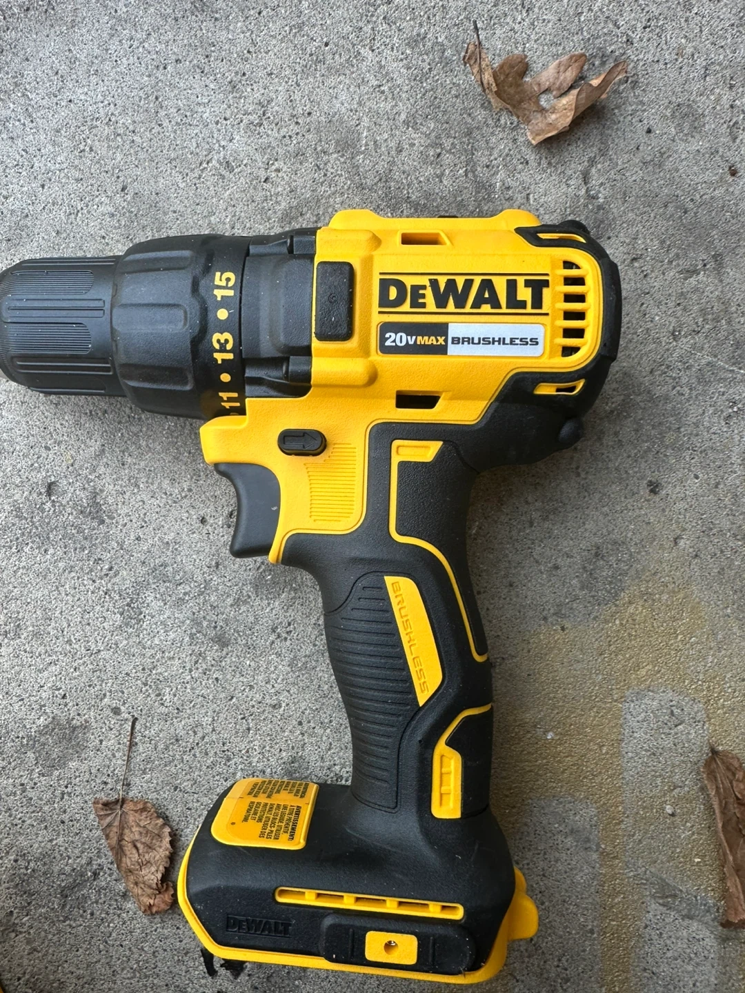 This is a DEWALT 20V MAX cordless drill/driver. It features a brushless motor for increased efficiency and longer run time. It has a variable speed trigger with a range of 0-500 RPM (low) and 0-1750 RPM (high).