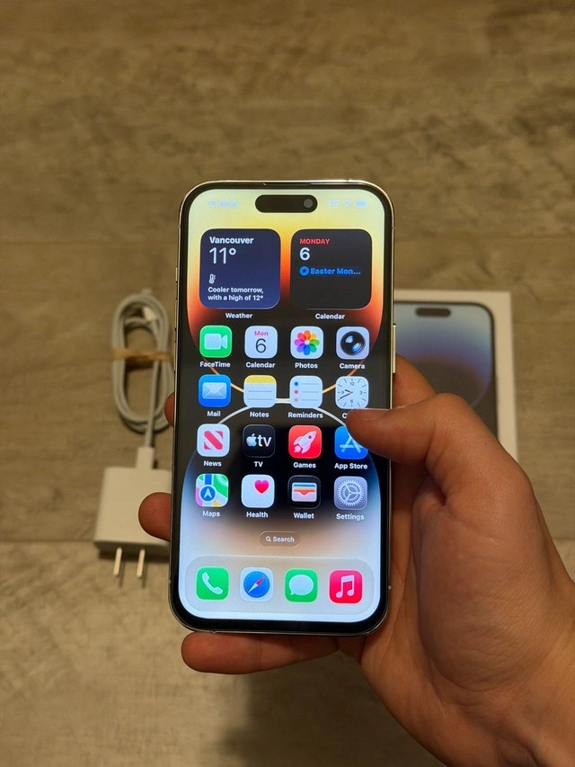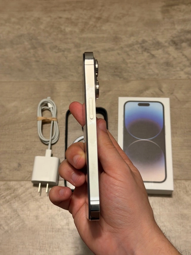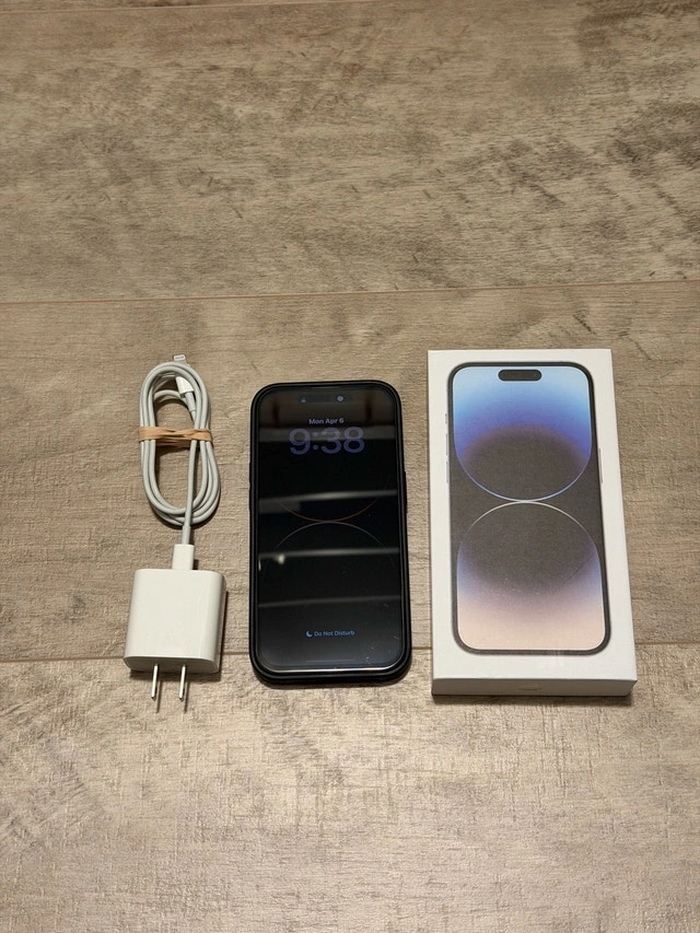Selling a clean iPhone 14 Pro in excellent condition. Fully functional with no issues. Battery health is 91%. Screen protector already installed. Includes original box, charging cable, charging brick, and phone case. Carrier is unlocked.