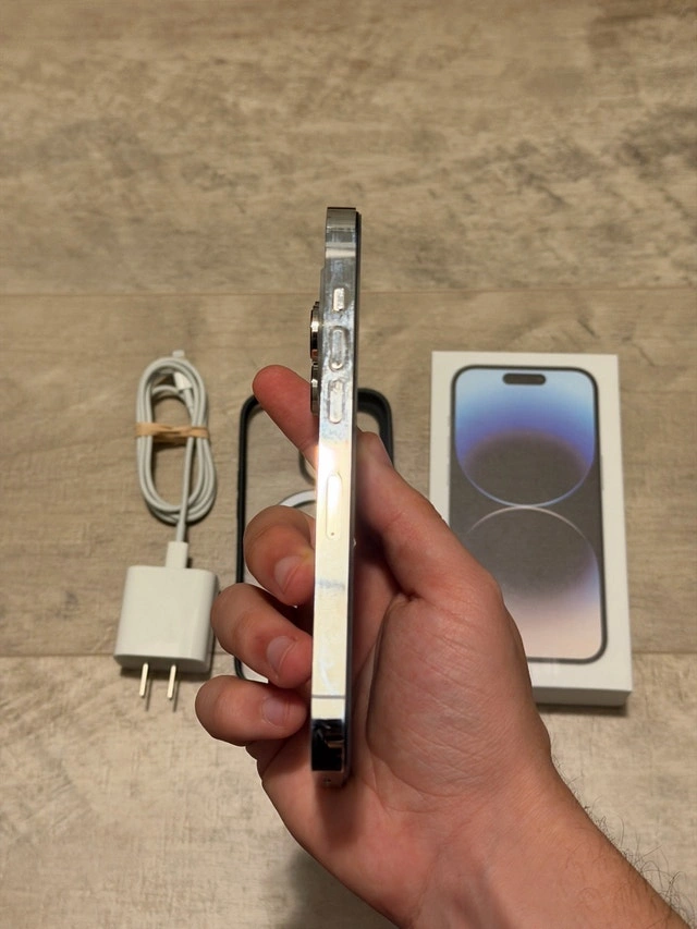 Selling a clean iPhone 14 Pro in excellent condition. Fully functional with no issues. Battery health is 91%. Screen protector already installed. Includes original box, charging cable, charging brick, and phone case. Carrier is unlocked.