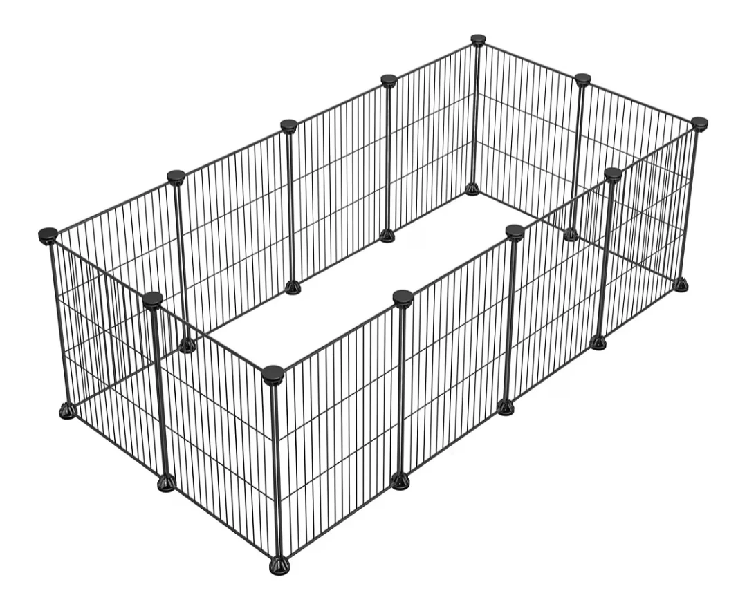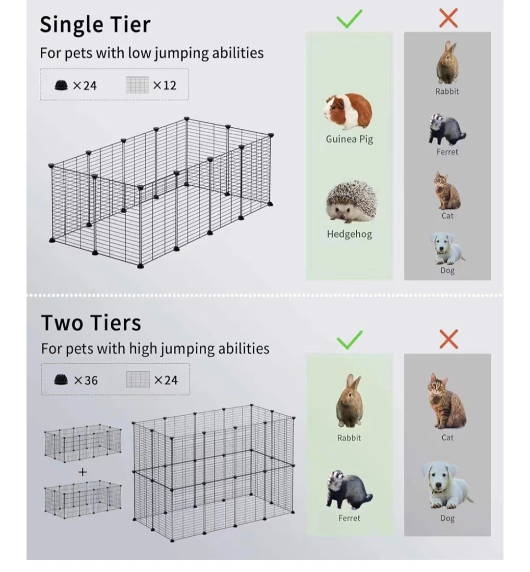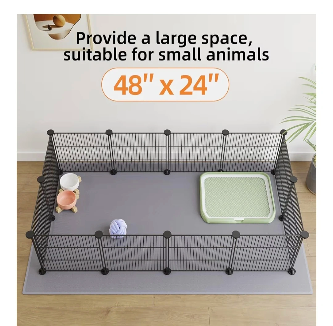 This pet fence provides a large space suitable for small animals. It measures 48" x 24". You can DIY the fence styling you need. Great for pets with low jumping abilities like guinea pigs and hedgehogs. Can be configured as a single or two-tier setup. Two sets available - one set for $20; two sets for $35.