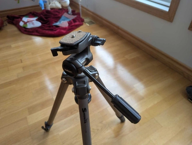 Sturdy, yet super light. Extends to approx. 64 inches high. High quality locking quick release system. Center pole inverts for macrophotography. Non-smoking home. Very limited use. Sells new for $179+tax. $120
