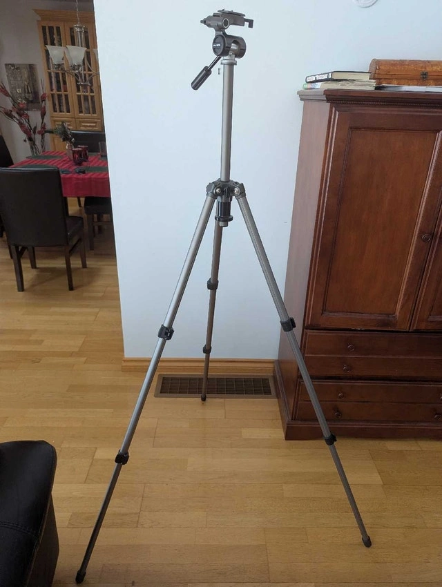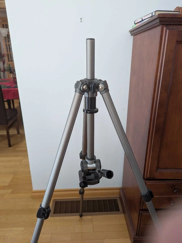 Sturdy, yet super light. Extends to approx. 64 inches high. High quality locking quick release system. Center pole inverts for macrophotography. Non-smoking home. Very limited use. Sells new for $179+tax. $120