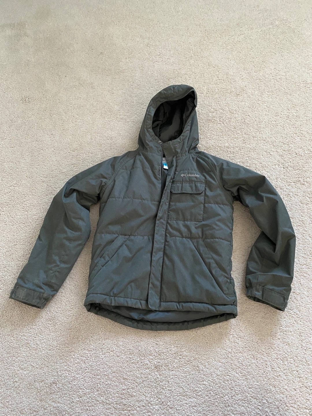 Selling a Columbia winter jacket in great condition! It's a size medium and perfect for the Canadian winter. The jacket is a nice dark green colour. It's super warm and has a hood. Great for staying cozy on those chilly days!