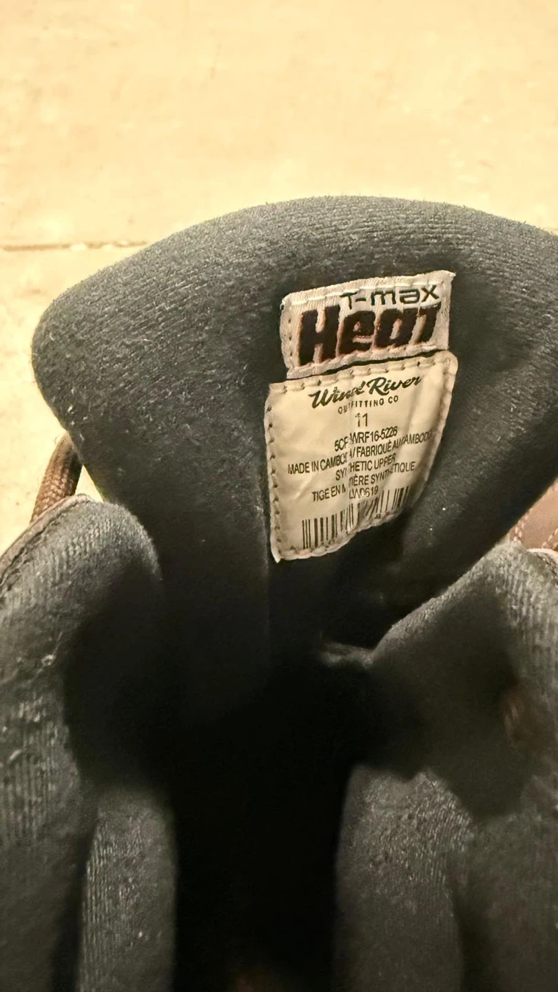 Wind River T-Max Heat winter boots in size 11. Features synthetic uppers and a durable sole. Perfect for cold weather conditions!