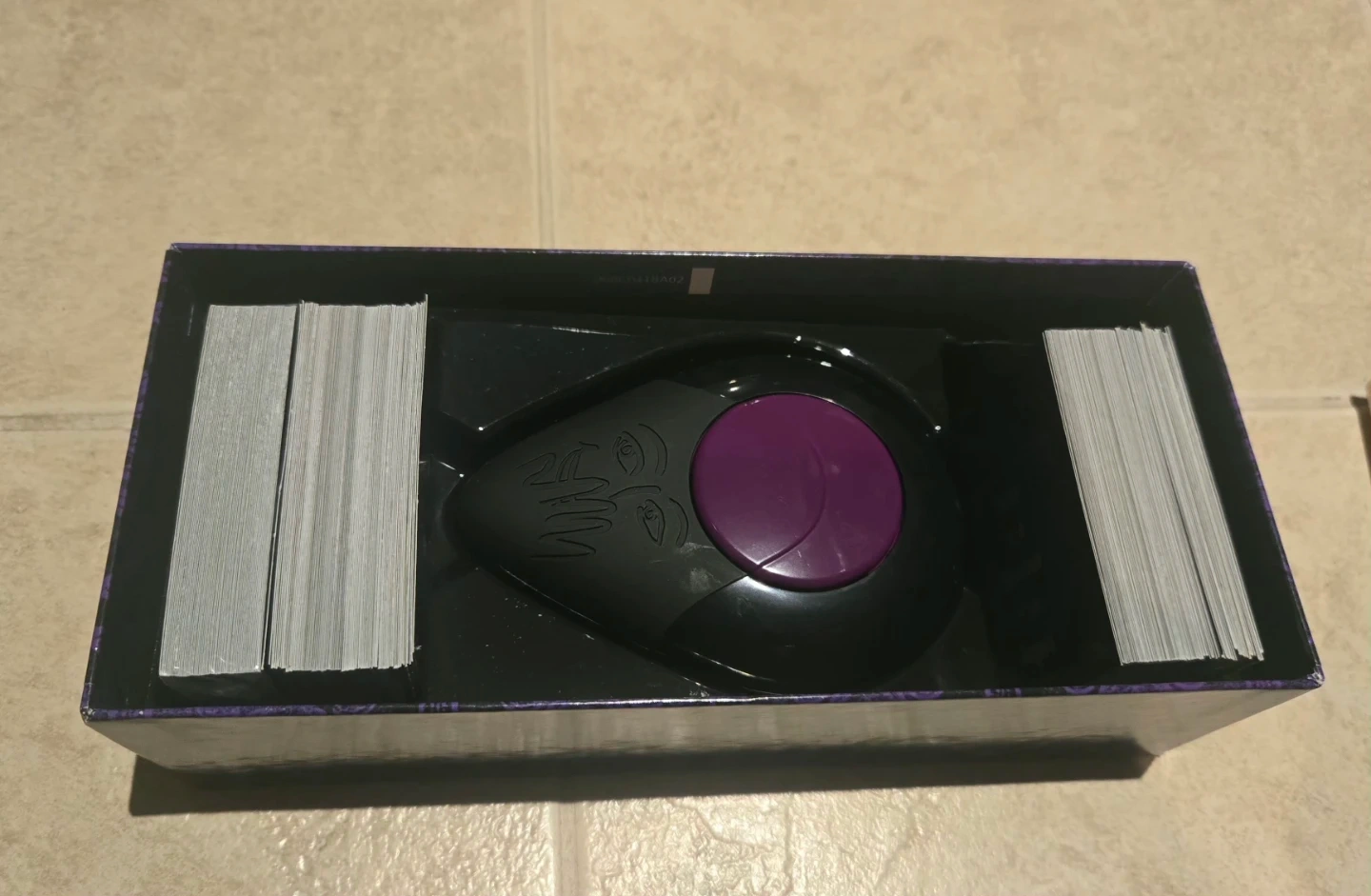 This is the Midnight Taboo adult party game. It includes the game unit and cards for late night fun. Batteries are not included.