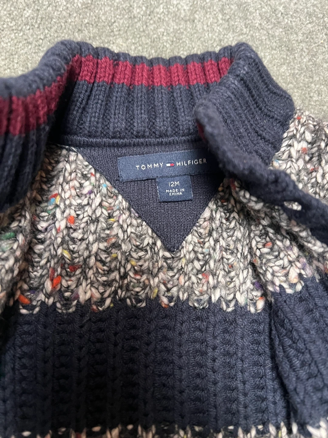This is a Tommy Hilfiger baby cardigan and an H&M navy puffer vest. The cardigan is size 12 months and made in China. It's a great layering set for cooler weather! The proper list is size 12 months to 18 months. Items come from a pageant smoke free home. Port Union/401/Pickering for pick up. The price listed is for both items.