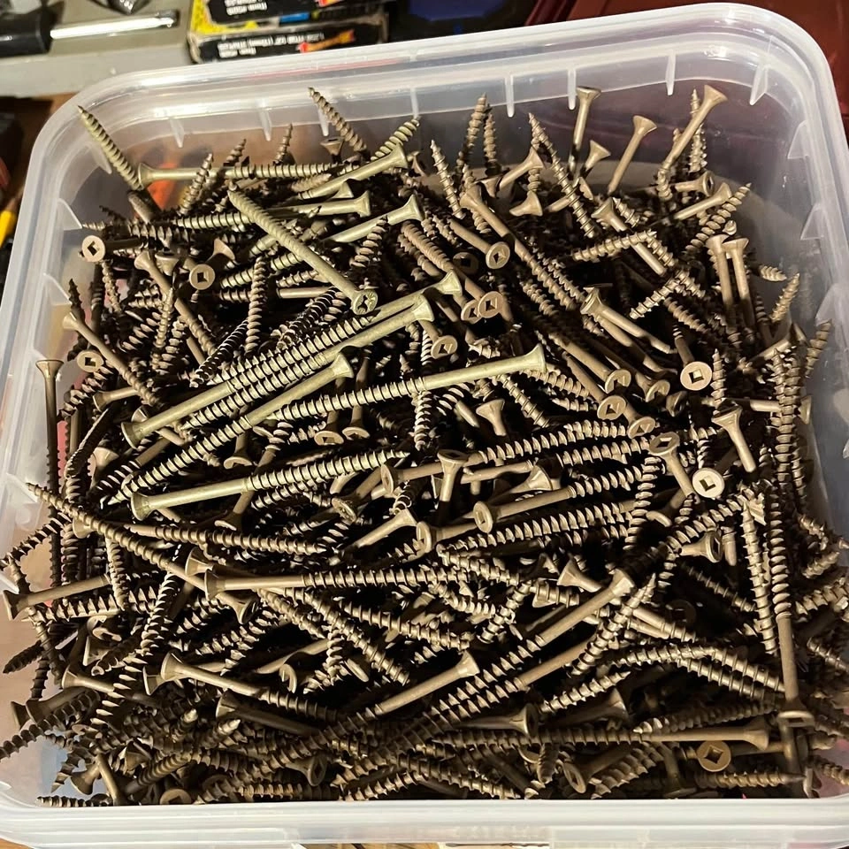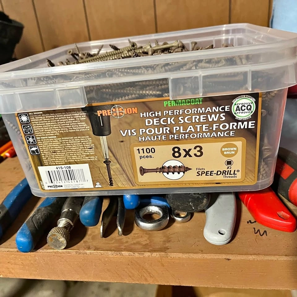 Buy & SellBulk bin ~1,100 #8 3” coated brown decking screwsBulk bin ~1,100 #8 3” coated brown decking screws$50Purchased for a project then moved. Bin is open and I’ve used ~10 screws. Price firm. Cash only. Pick up in Varsity.WHERE TO MEETHomeView MapSELLERJeffVarsity311 review0 chats·0 favorites·8 viewsSEND CHAT TO SELLERHi Jeff! I’m interested in your listing.Hi Jeff! I’m interested in your listing.Get the Karrot app to chatSign In to chat