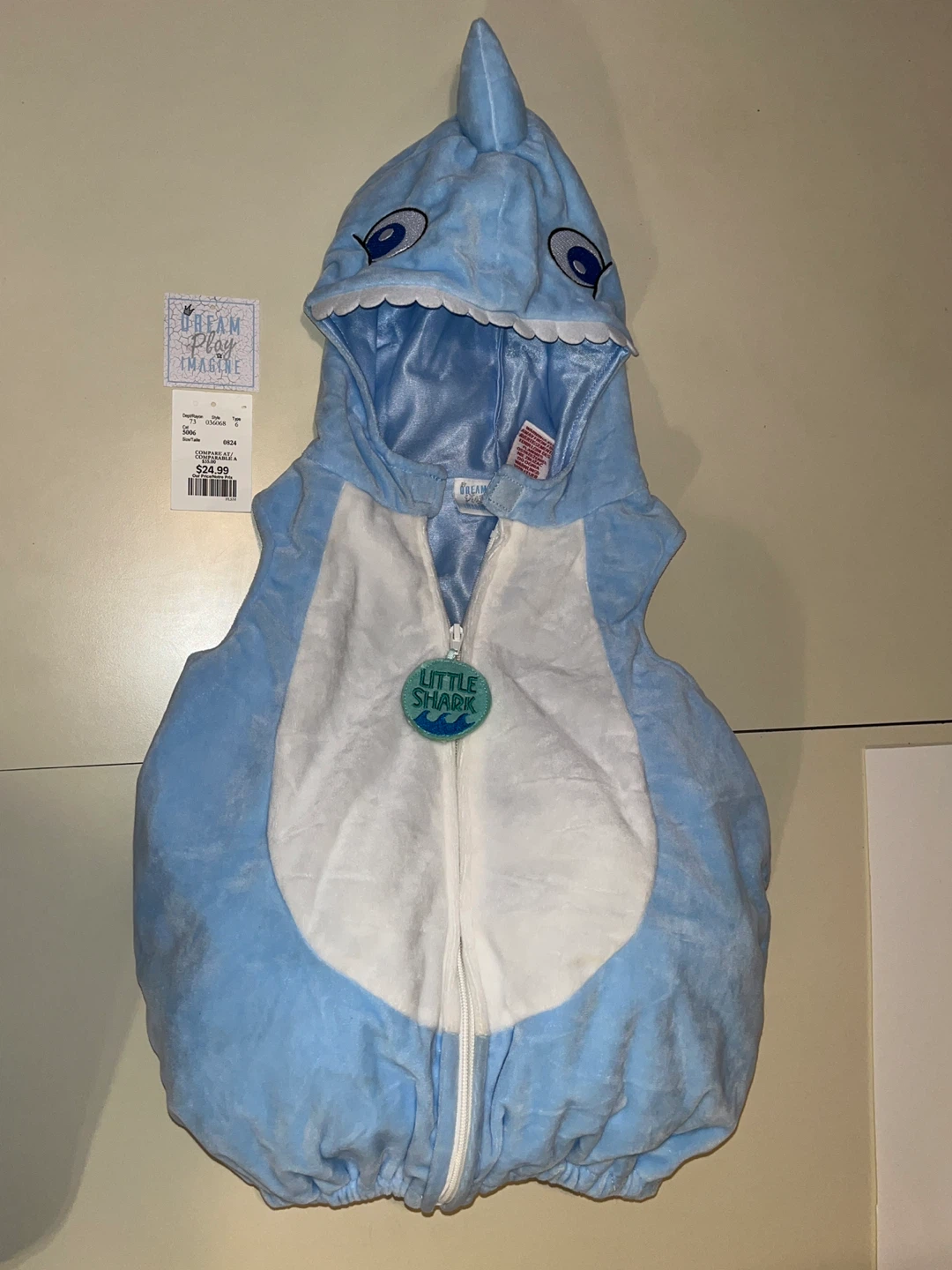 Selling a super cute shark costume from Dream Play Imagine! It's in size 24M and is a light blue colour. Perfect for dress-up or Halloween! Was only worn by by daughter for less than 1 hour so it’s very clean and hardly used.