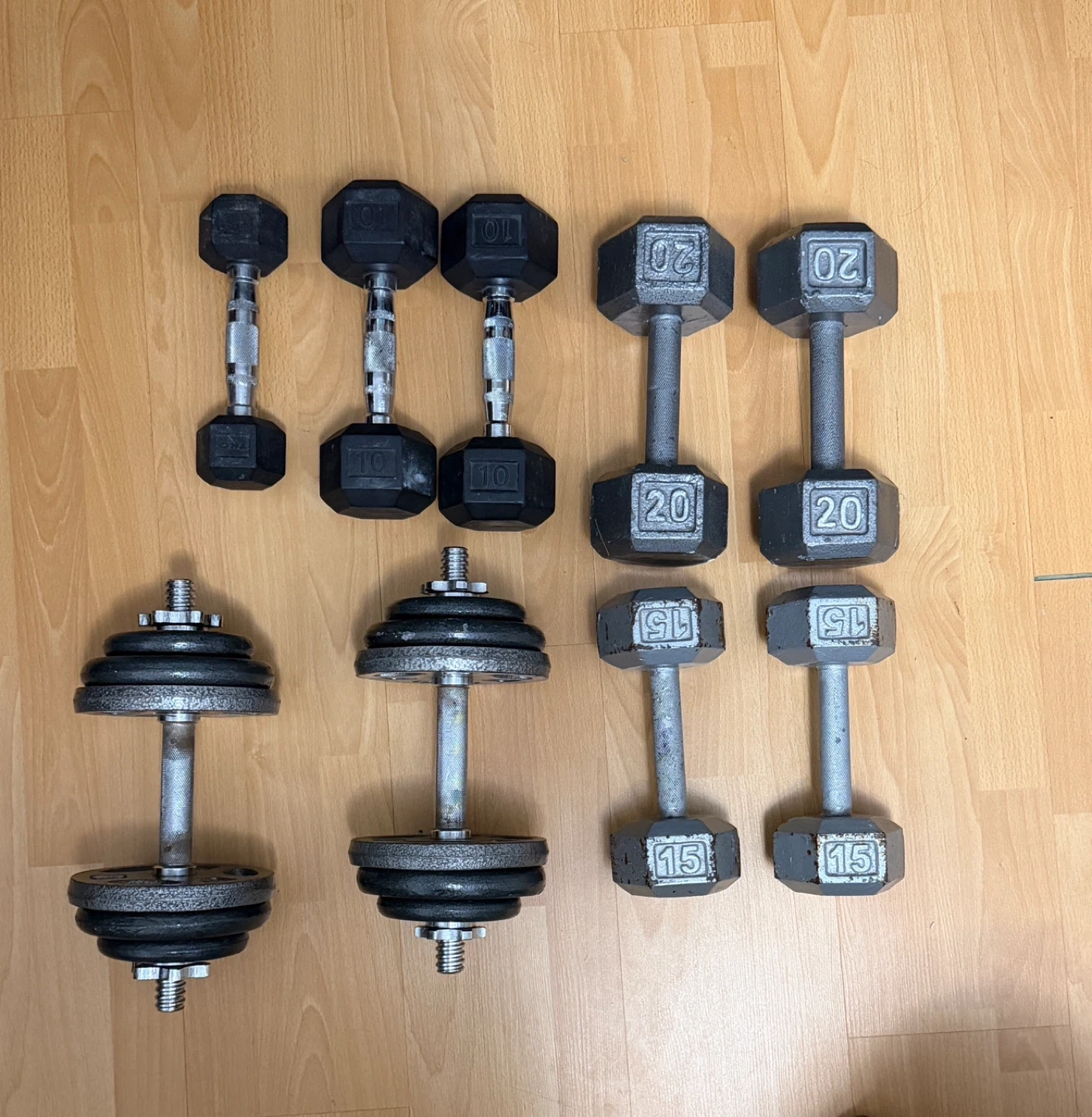 Hex Dumbbells and adjustable plate dumbbells