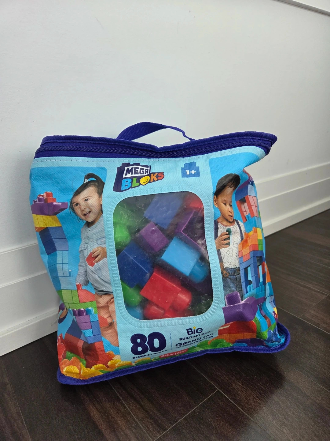 Mega Bloks Big Building Bag with 80 pieces. Suitable for ages 1+. Plastic construction blocks for creative play.