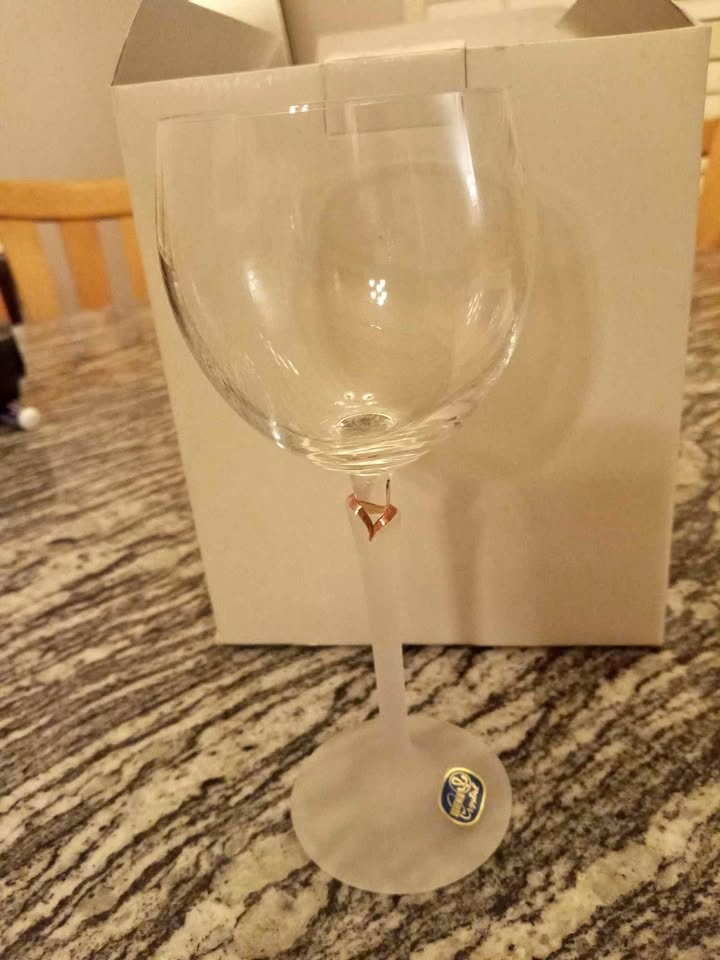 Bohemia Crystal from "Crystalex Line". These 7" tall flutes feature frosted stems with gold tone accents. 8 pieces available.