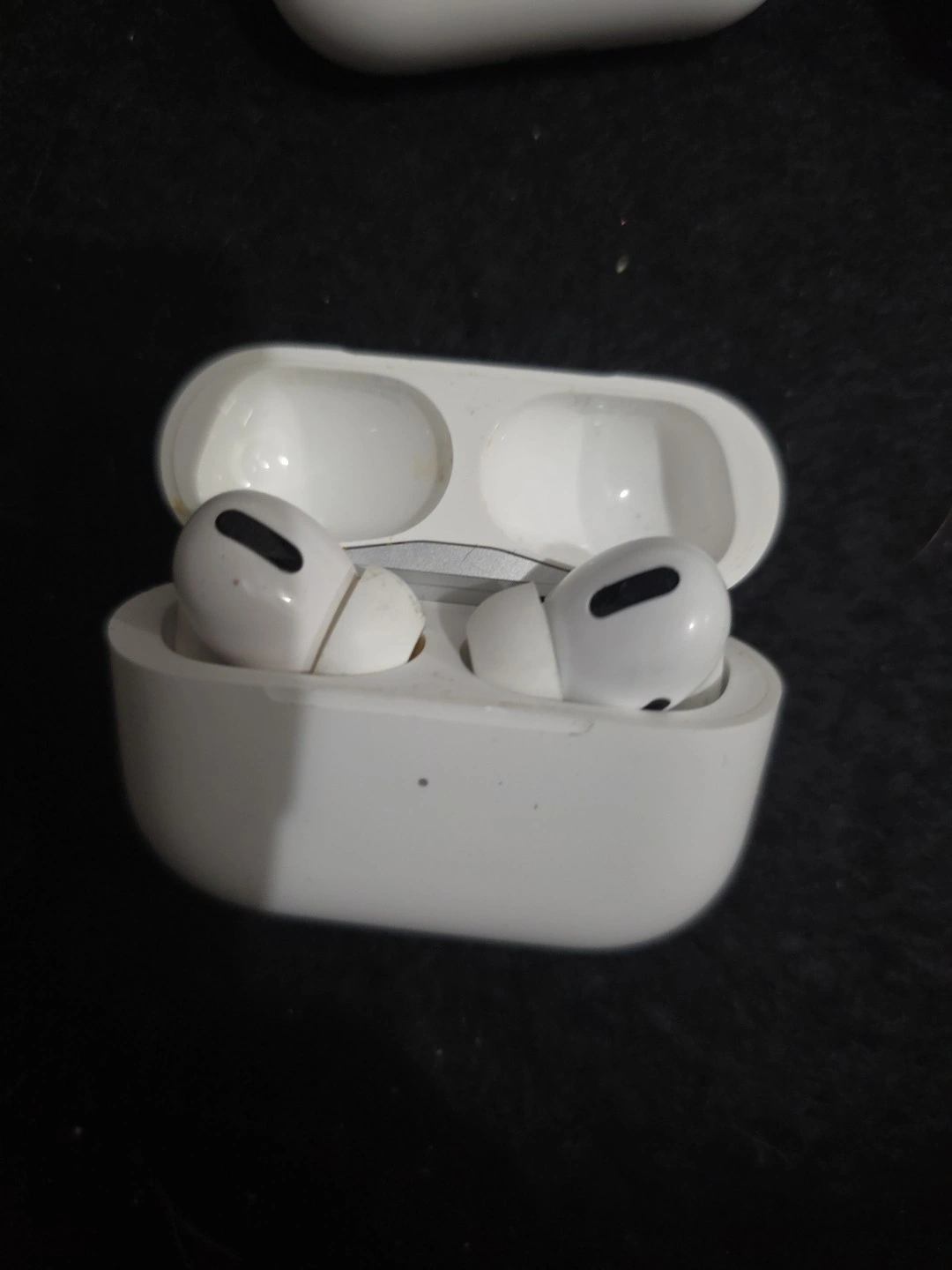 Used Apple AirPods Pro (1st Generation). Features noise cancellation, speech-detecting accelerometer, sweat-proof, and water-resistant. Built-in microphone. White color. Bluetooth connectivity