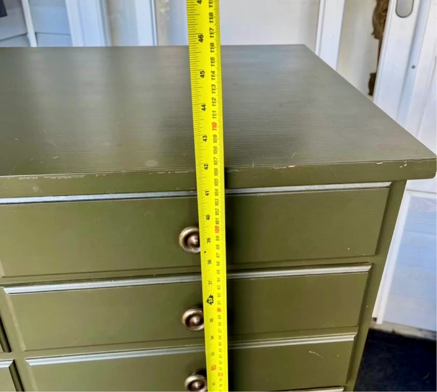 This green dresser has 5 drawers for ample storage.