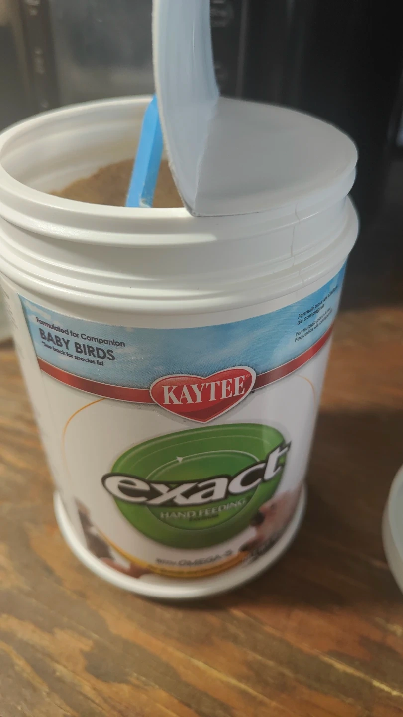 Kaytee Exact Handfeeding formula for companion baby birds. Made with Omega-3 fatty acids. MFG 08/25/25. Use by 11/18/26.