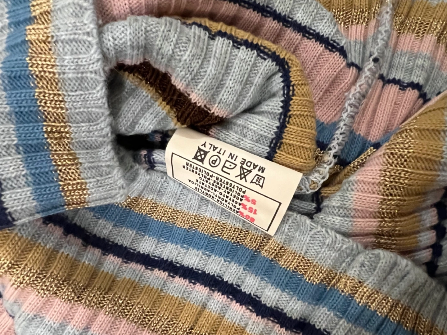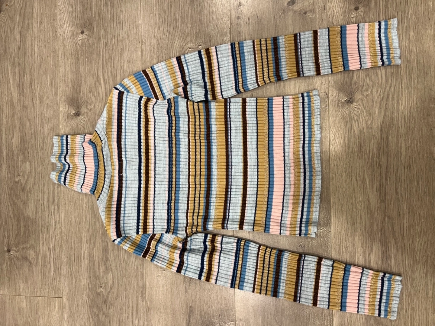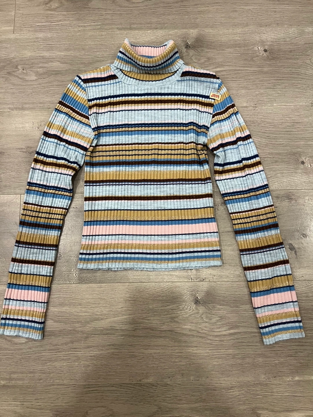 Long sleeve ribbed knit turtleneck sweater. Multicoloured horizontal stripes. Excellent condition. size small