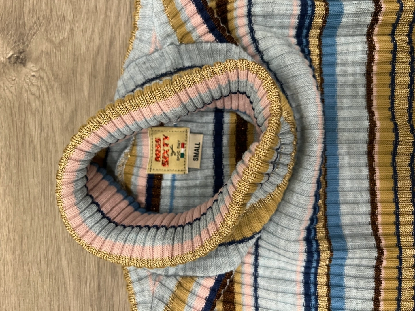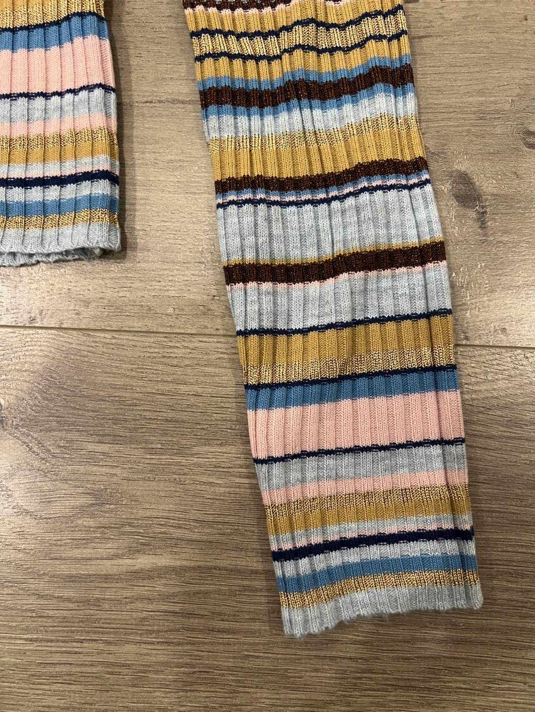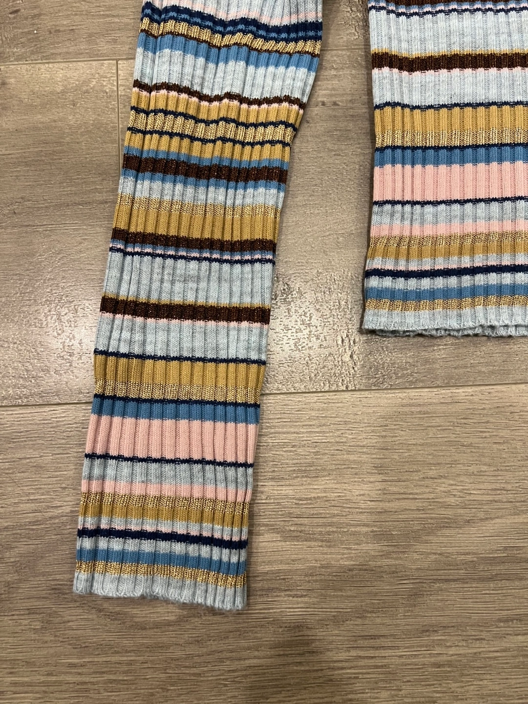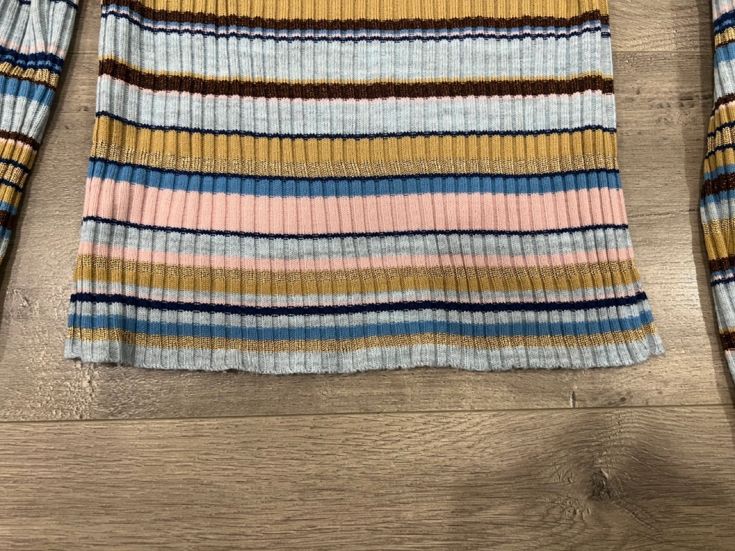 Long sleeve ribbed knit turtleneck sweater. Multicoloured horizontal stripes. Excellent condition. size small