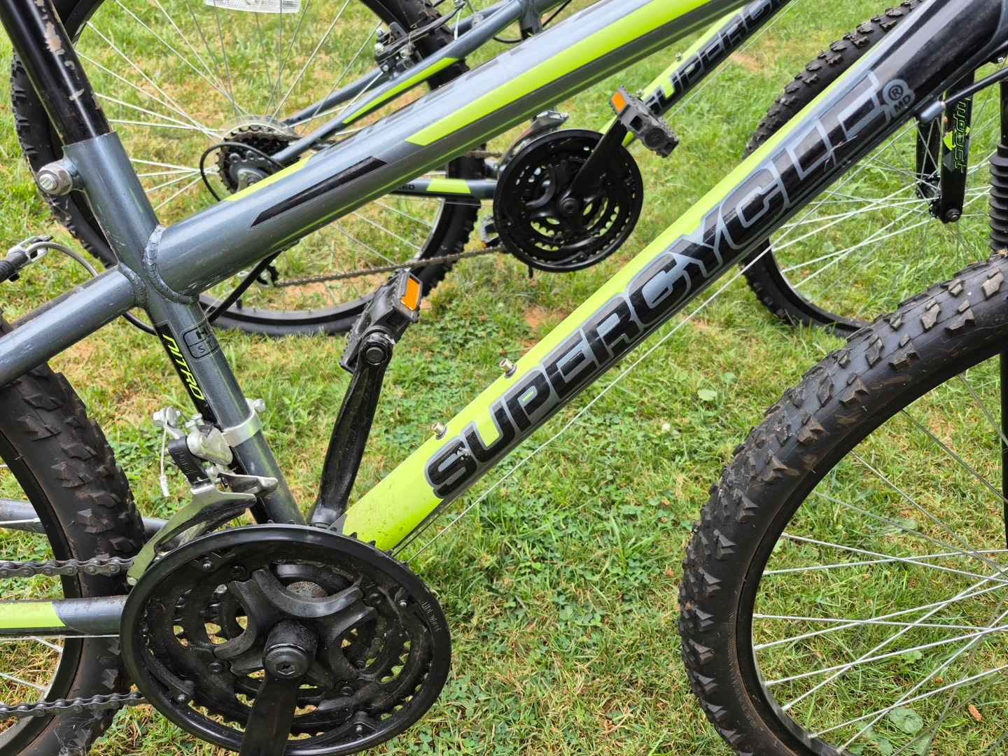 2 Super Cycle Nitro 24XT youth mountain bikes. 21 speed. 24" wheels, 12.5" frame. Retail at $229 for 1. Please visit Canadian Tire website for more details. Will sell for $75individually or will take $125 for both. They have been stored in a shed and barely used. My kids grew too quickly to be able to get much use out of them. Still have nubs on the tires. Serious inquiries only.