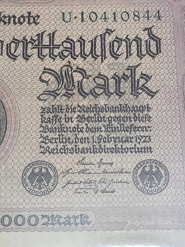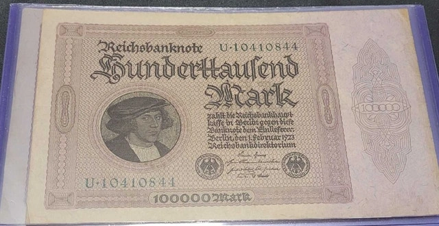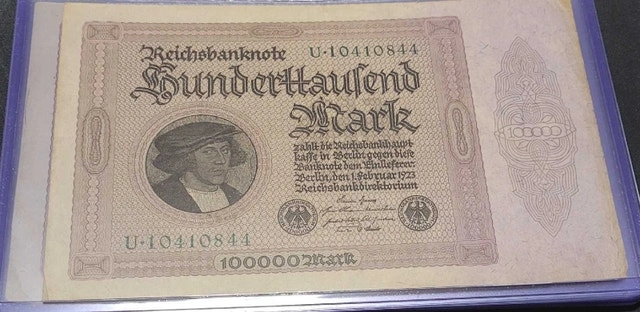 7 1923 German Banknotes in this Lot, all with the same denomination: 100,000.00 Mark. All circulated but in good condition. See pictures for details. Cash accepted.