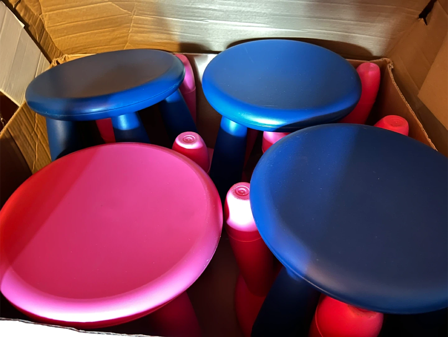 Selling a set of 8 (4 navy blue/4pink) IKEA Mammut children's stools. These are perfect for kids' rooms, play areas, or anywhere you need a sturdy and colourful little seat. There are 2 blue and 1 pink, and 1 red stools. They are in good condition and ready for a new home!