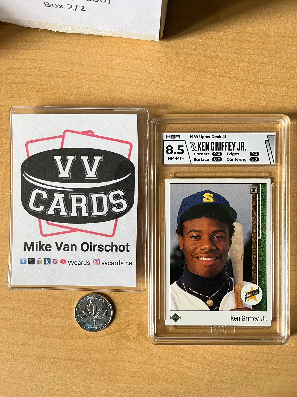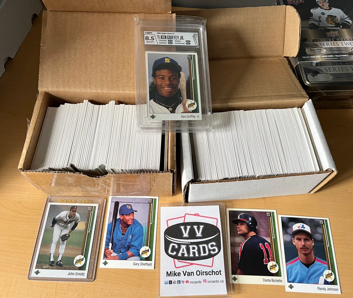 - 1989 includes HGA graded 8.5 Ken Griffey Jr. Rookie Card (RC) and other rookies: Carpenter, Sheffield, Smoltz (800 cards)