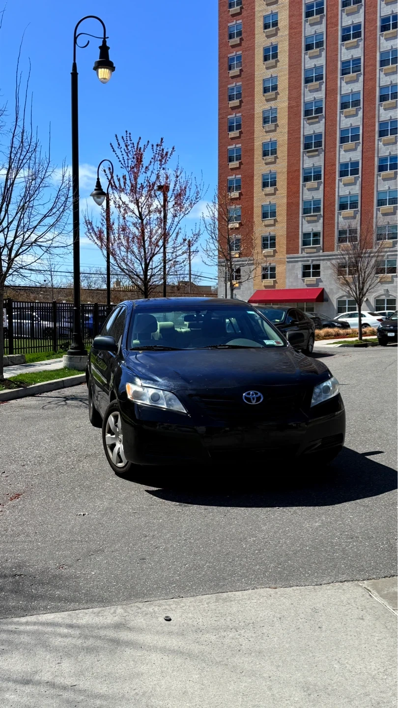 This is a black Toyota Camry sedan. It's a four-door vehicle. Ready for a new owner!