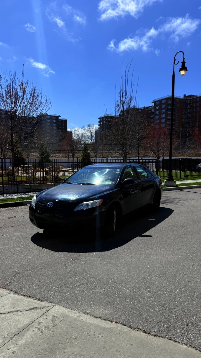 This is a black Toyota Camry sedan. It's a four-door vehicle. Ready for a new owner!