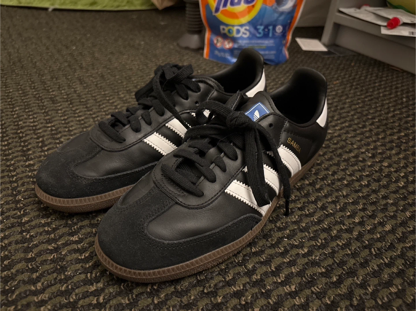 Got these Adidas sambas a while ago, they’re a size 8 women’s (US size). I’ve worn these shoes maybe three times total lol. They’re basically new :PP