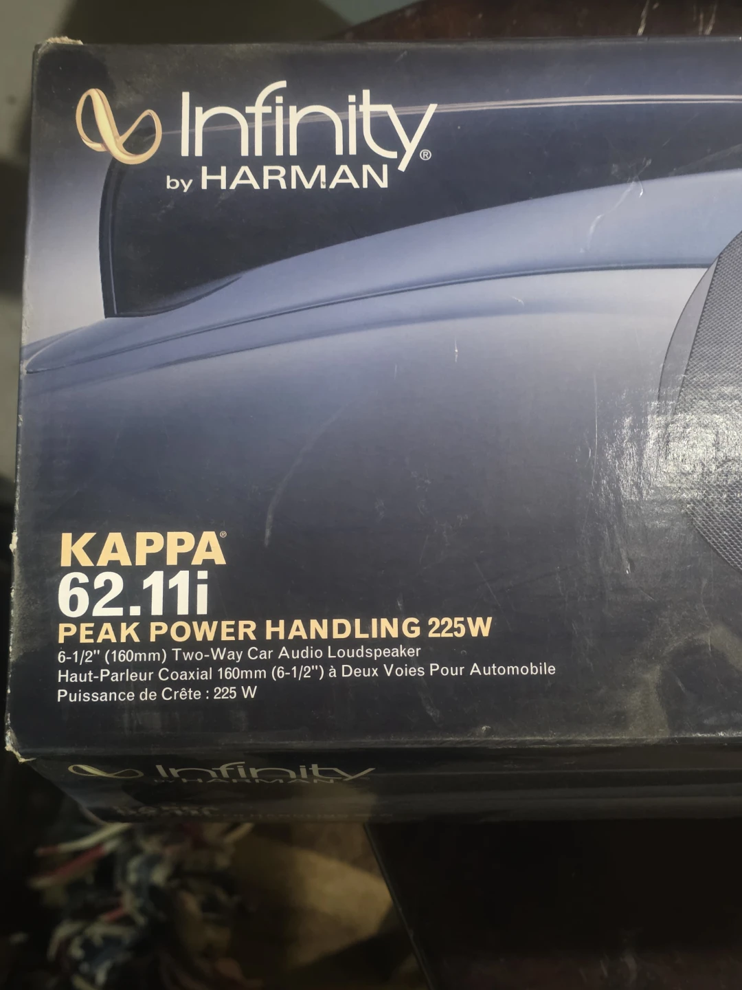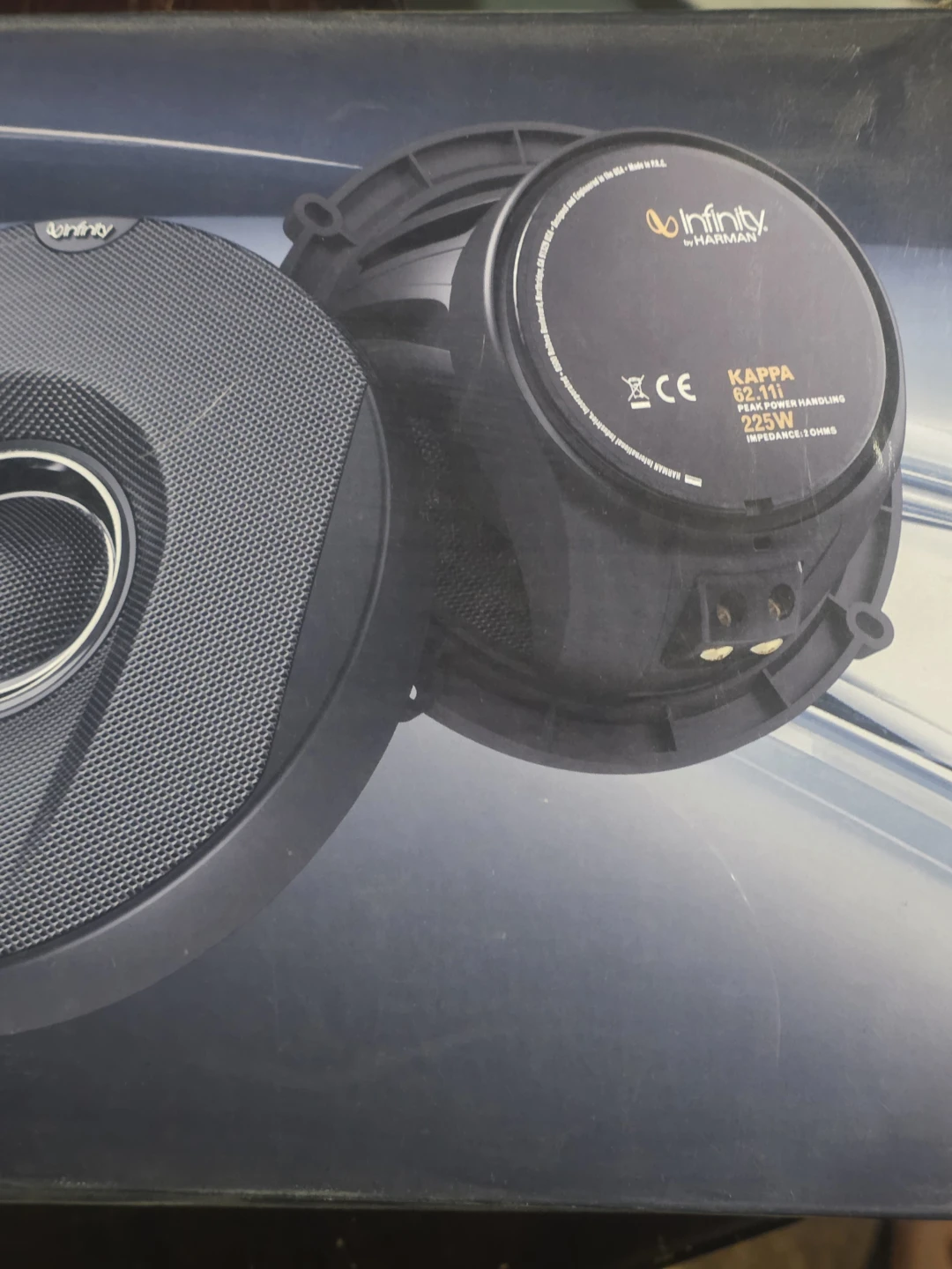 Infinity Kappa 62.11i 6-1/2" (160mm) two-way car audio loudspeakers. Peak power handling is 225W. Includes original box and accessories only. Speakers not included.