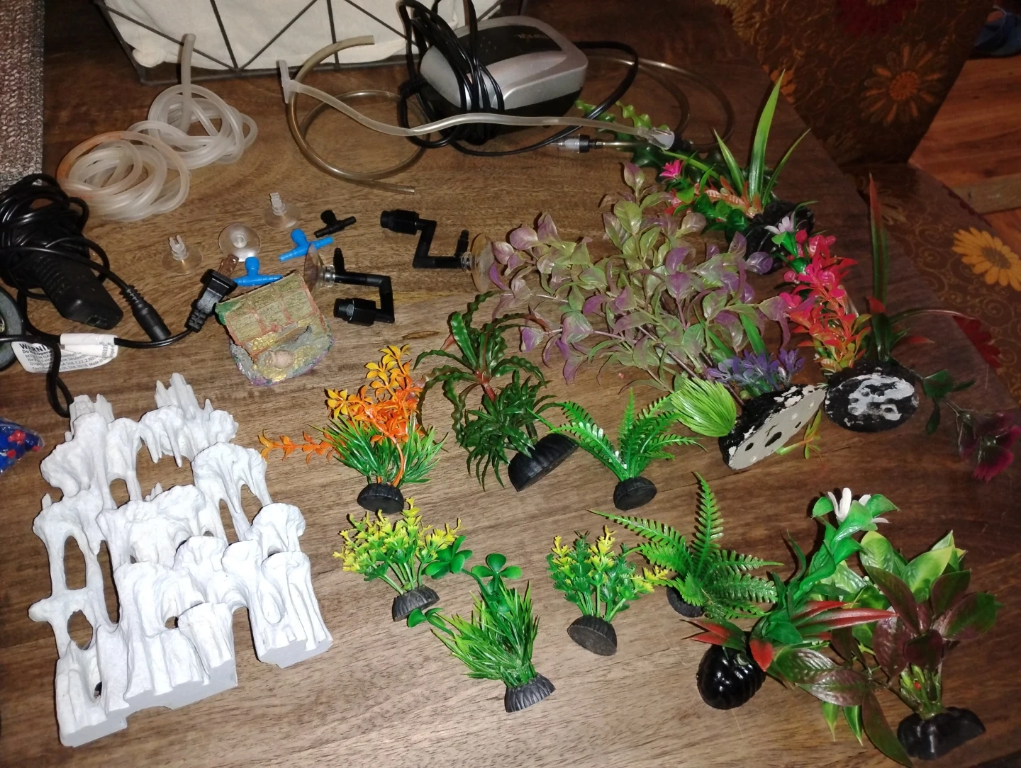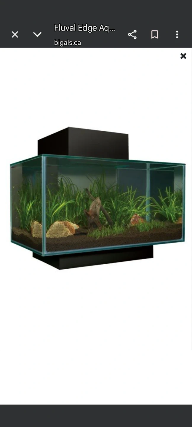 This is a Fluval Edge aquarium, a 6-gallon (23 L) 3D water cube. It comes with integrated LED lighting and a 3-stage filter. Also included are various aquarium decorations, a power air pump, tubing, and water conditioner. Kit includes 30ml Nutrafin Aqua Plus Water Conditioner, 30ml Nutrafin Cycle Biological Aquarium Supplement, and a care guide. Including $150 of extras