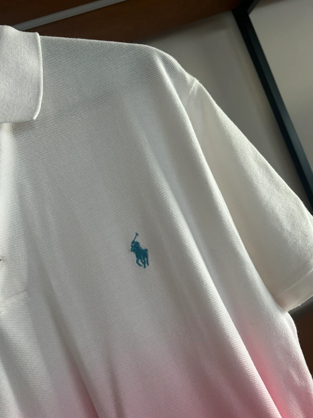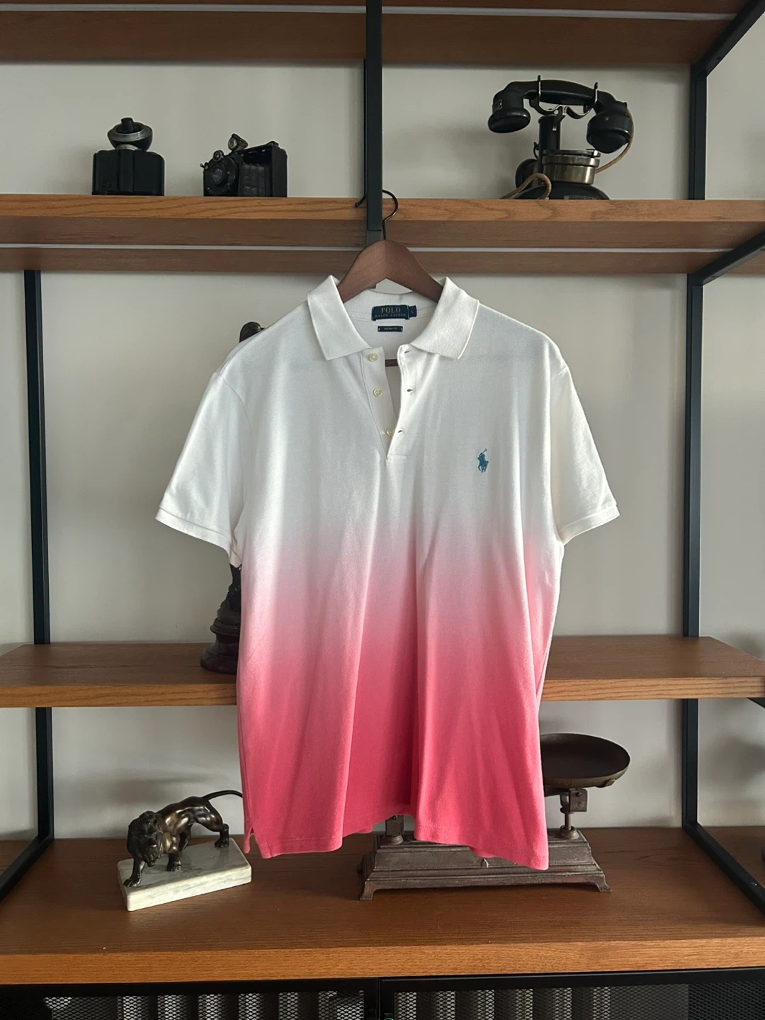 Selling a Polo Ralph Lauren polo shirt in a custom fit. It's size L and has a nice white and pink ombre design. The iconic Polo logo is embroidered on the chest. Perfect for a casual look! Its never worn selling since i never really reached for it.