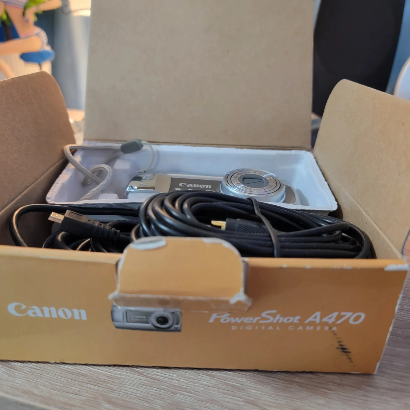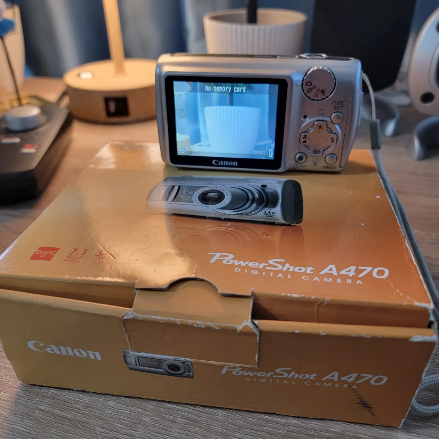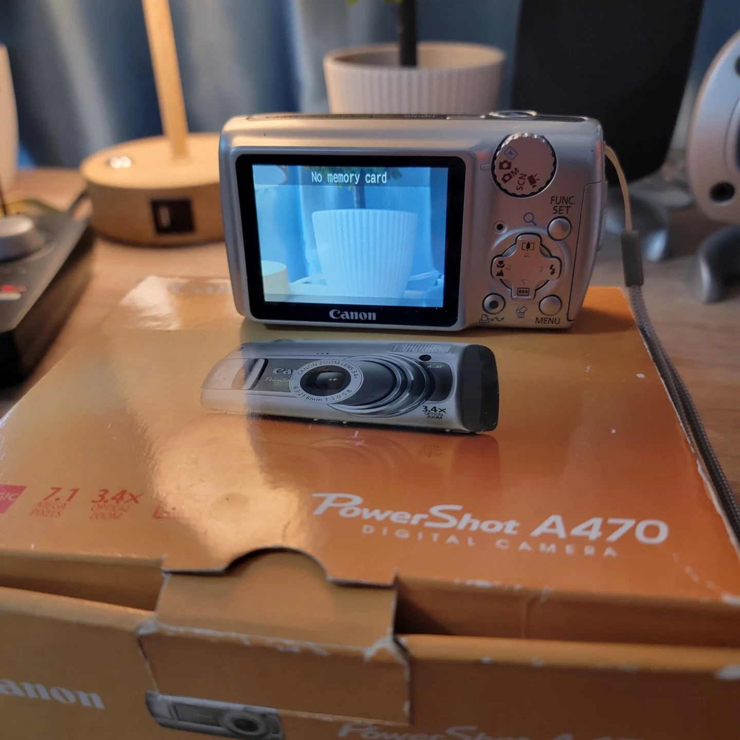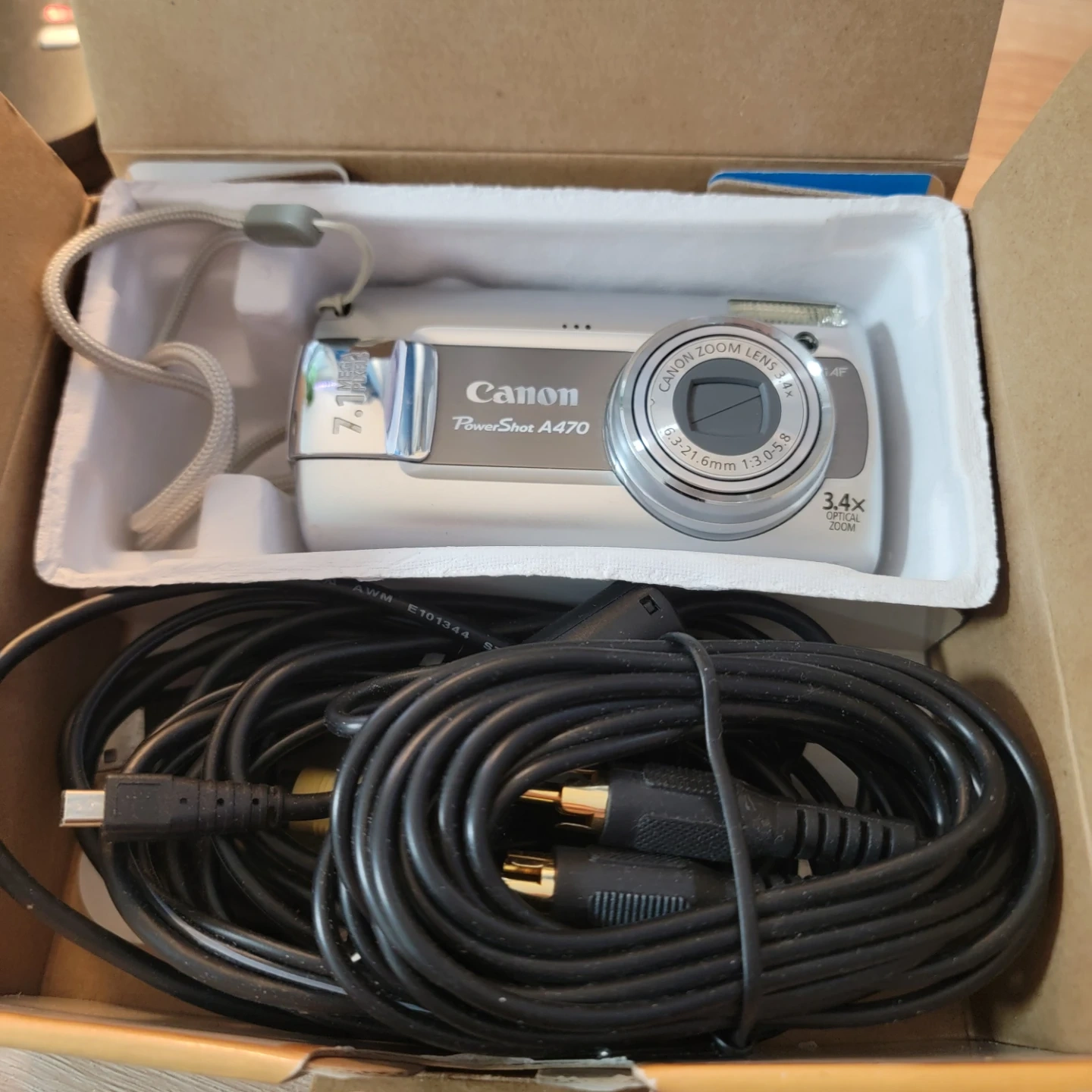 This is a Canon PowerShot A470 digital camera. It features a 7.1 megapixel resolution and 3.4x optical zoom. The camera has a 2.5-inch LCD screen.