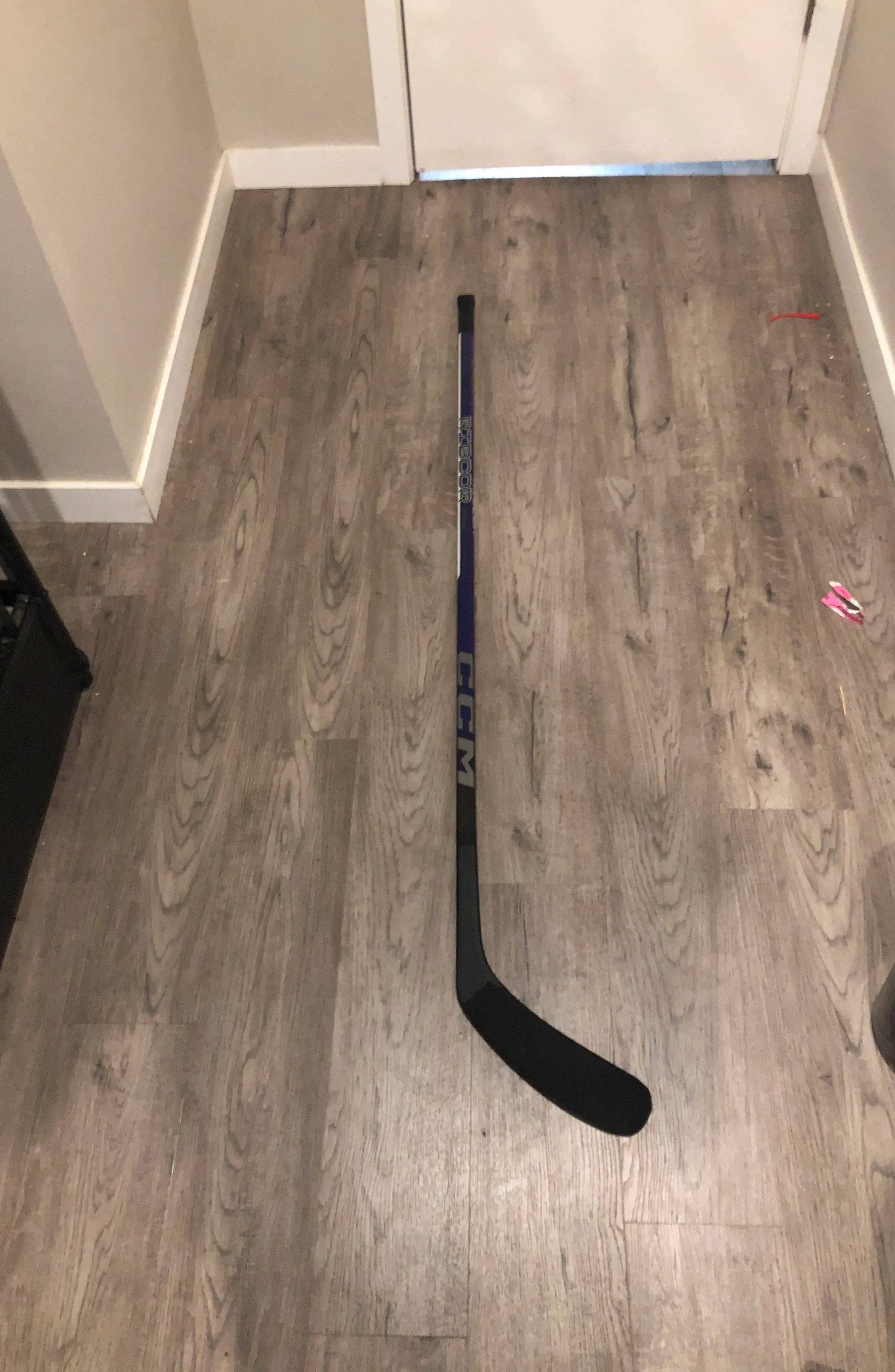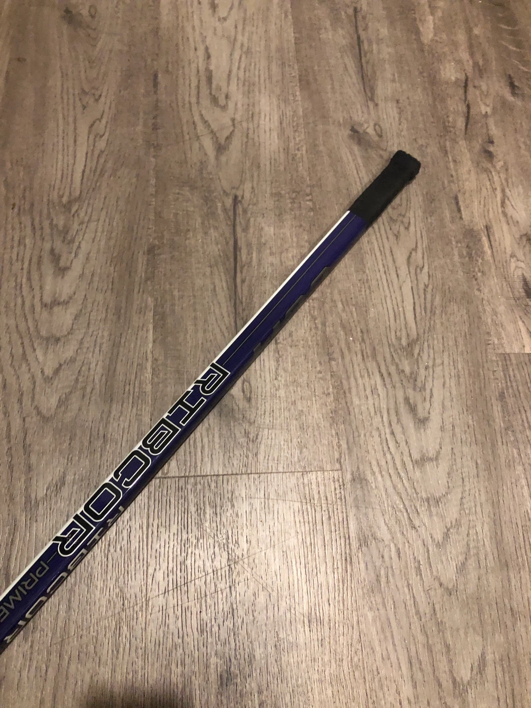 A CCM Ribcor Prime hockey stick. This stick is great for players looking to improve their game. It's lightweight and durable for effective play.