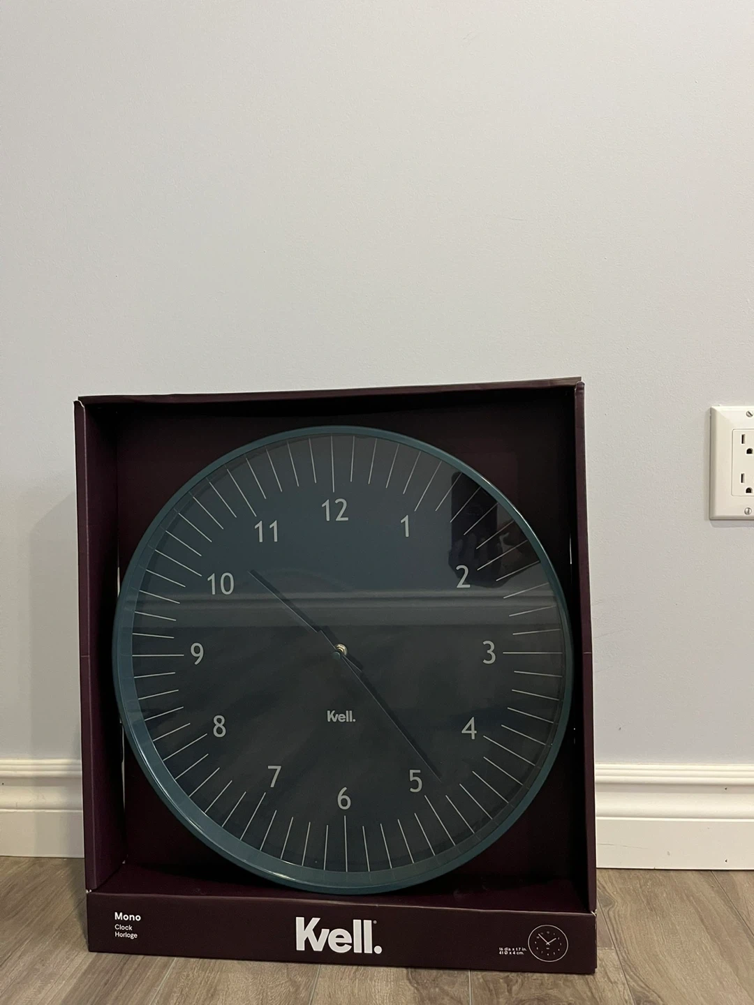 Set of 2 Wall clocks. Each $35. This Kvell Mono clock offers bold colours and clean lines. It features a quartz clock movement and a durable metal frame and backing. The clock's monochrome design adds a punch of sophistication to your walls.