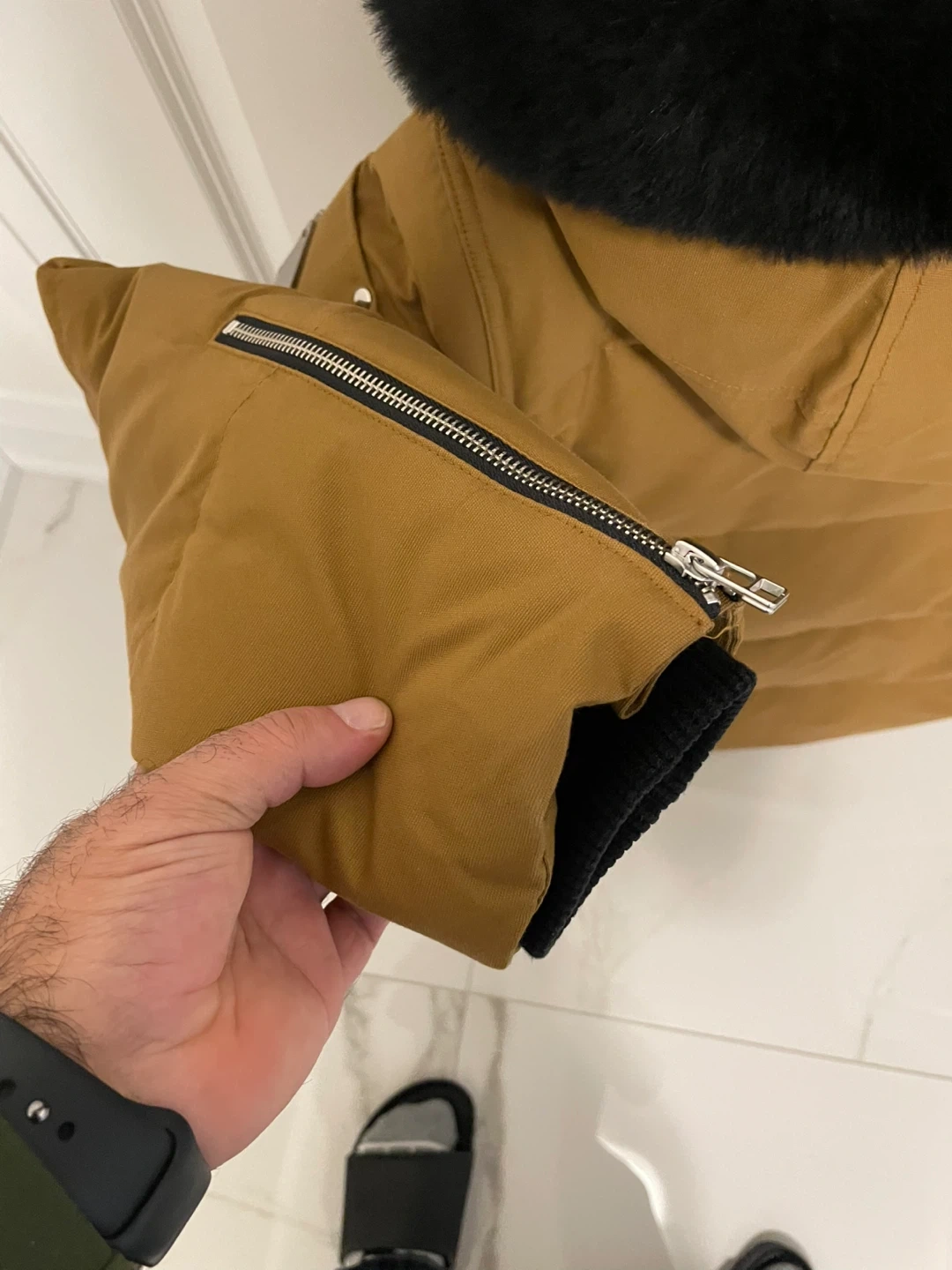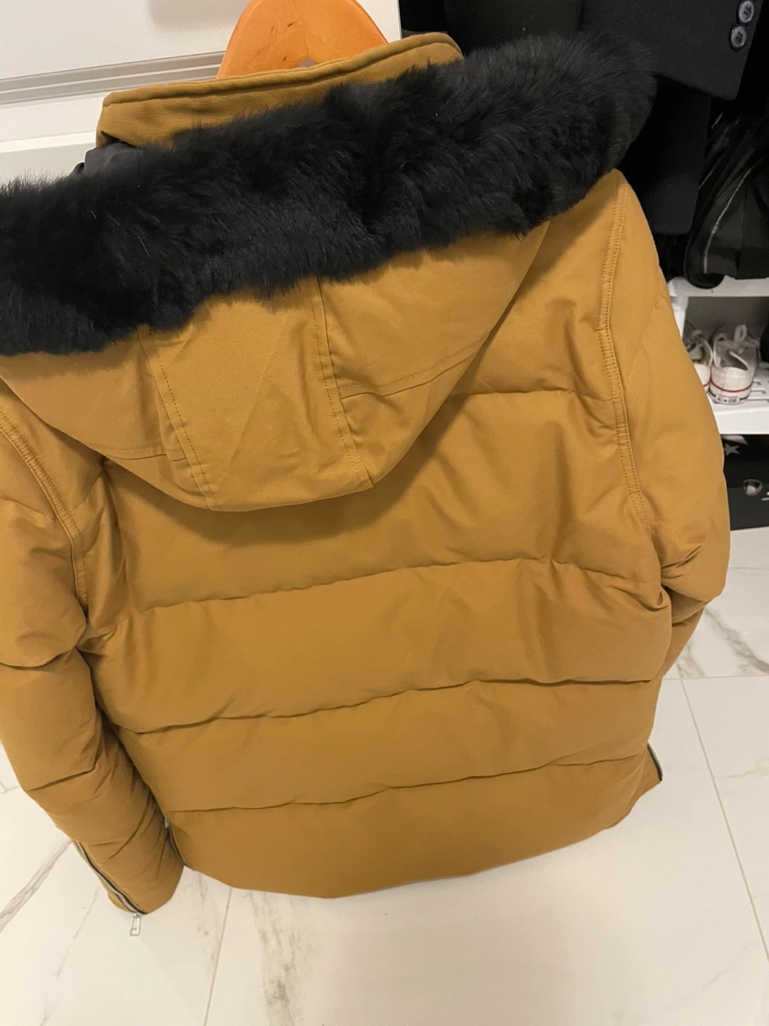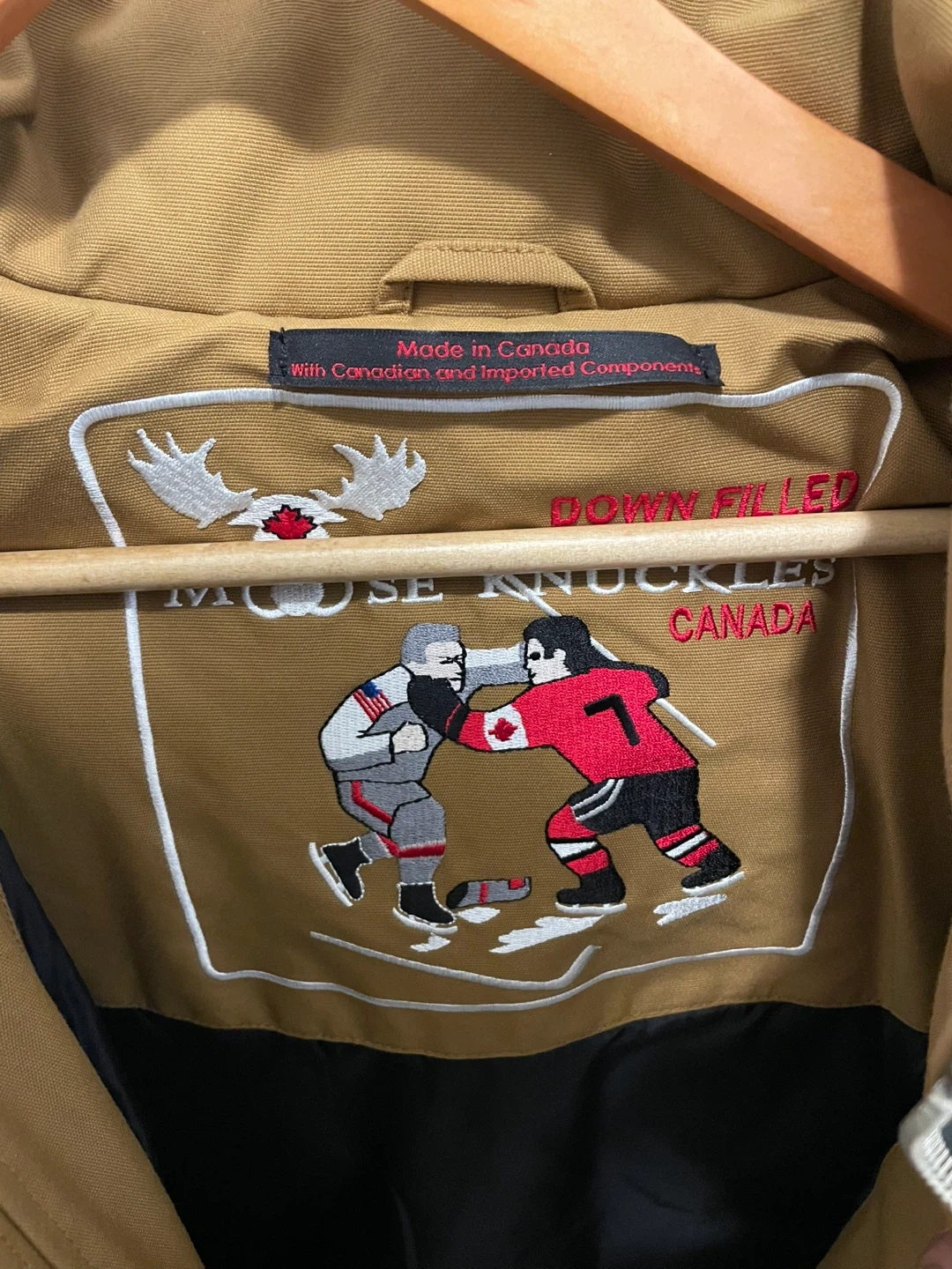 Here's a Moose Knuckles down parka jacket. It's a stylish and warm jacket, perfect for the Canadian winter! The jacket is gold/brown colour with a black fur hood. This jacket has the NFT and you can confirm its authenticity. $650