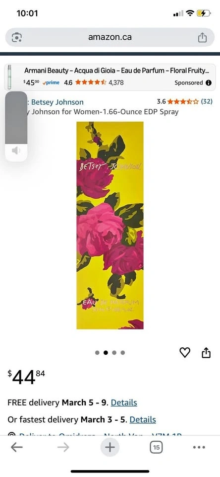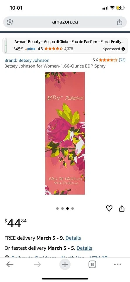 Buy & SellEau de parfume Betsey JohnsonEau de parfume Betsey Johnson$25Brand new, 100 ml. Pick up near east 46th ave and Doman street.WHERE TO MEETCheck LocationView MapSELLERverifiedShabKillarney42742 reviews0 chats·0 favorites·3 viewsSEND CHAT TO SELLERHi Shab! I’m interested in your listing.Hi Shab! I’m interested in your listing.Get the Karrot app to chatSign In to chat