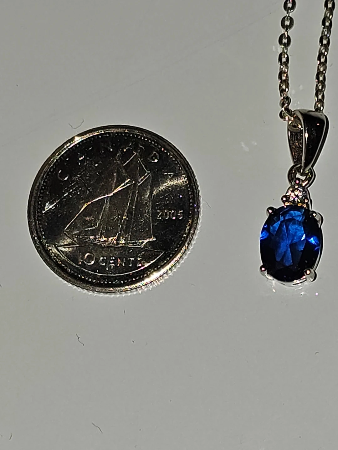 Sterling Silver Oval Blue CZ Pendant Necklace