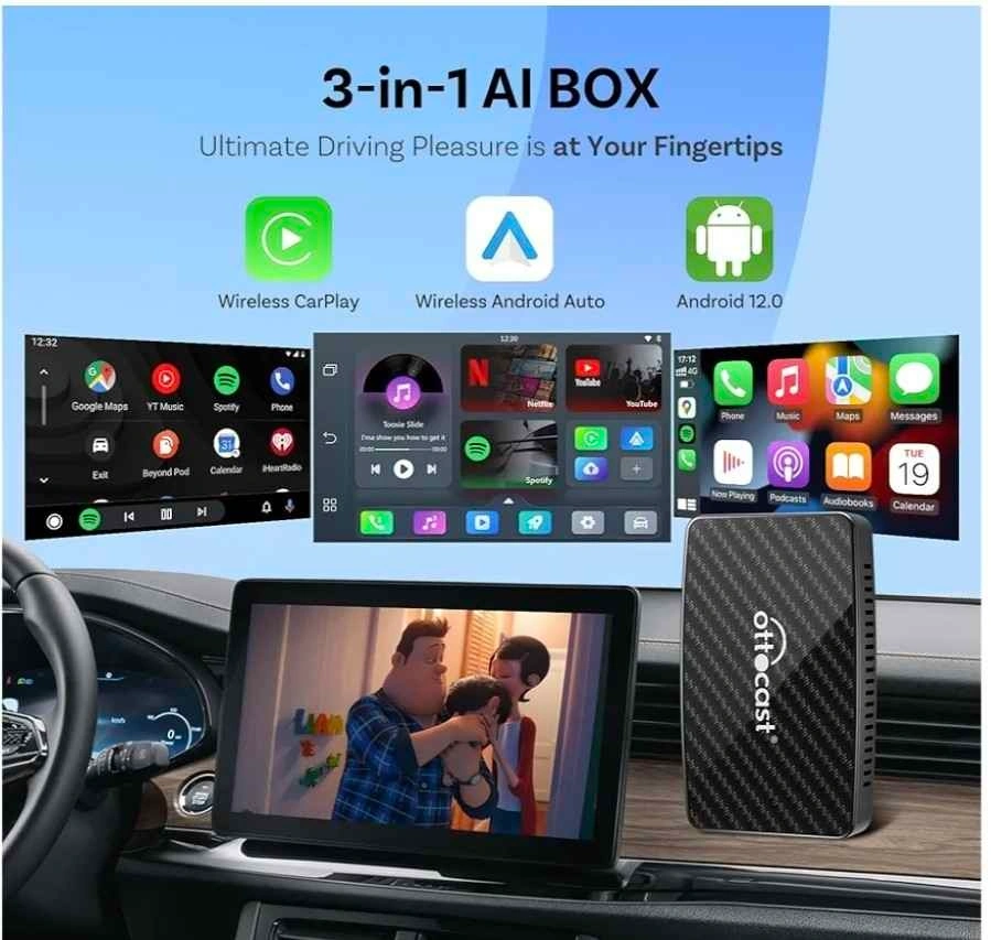 OTTOCAST Play2Video Pro – Wireless CarPlay & Android Auto Adapter with YouTube, Netflix, Spotify, IPTV | 5GHz WiFi, Auto Connect, No Delay | Compatible with OEM Wired CarPlay