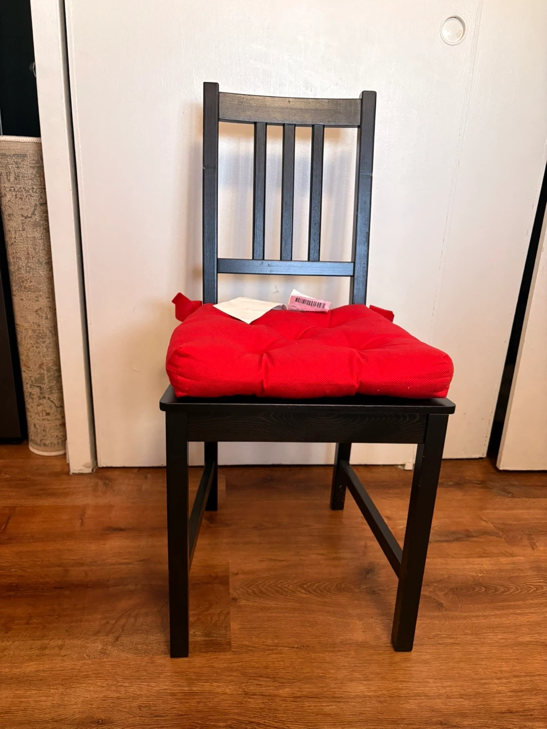 Buy & SellBlack Wooden Dining Chair with Red CushionBlack Wooden Dining Chair with Red Cushion$12.60Black wooden dining chair with a comfortable red seat cushion. The chair has a simple slatted back design.ConditionLike newWHERE TO MEETWoodsideView MapSELLERverifiedPiuWoodside620 reviews0 chats·0 favorites·21 viewsSEND CHAT TO SELLERHi Piu! I’m interested in your listing.Hi Piu! I’m interested in your listing.Get the Karrot app to chatSign In to chat