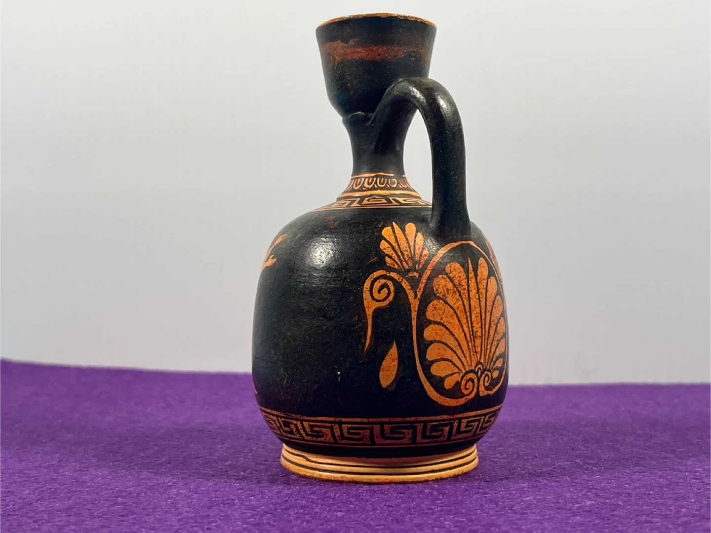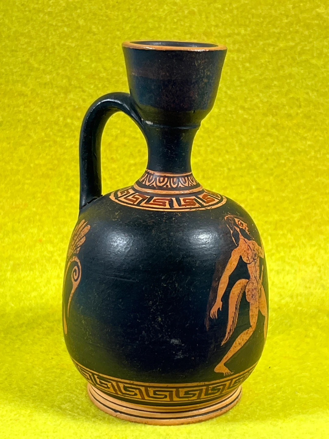 This object is a modern museum replica of an ancient Athenian vessel, specifically a Red-Figure Aryballos.