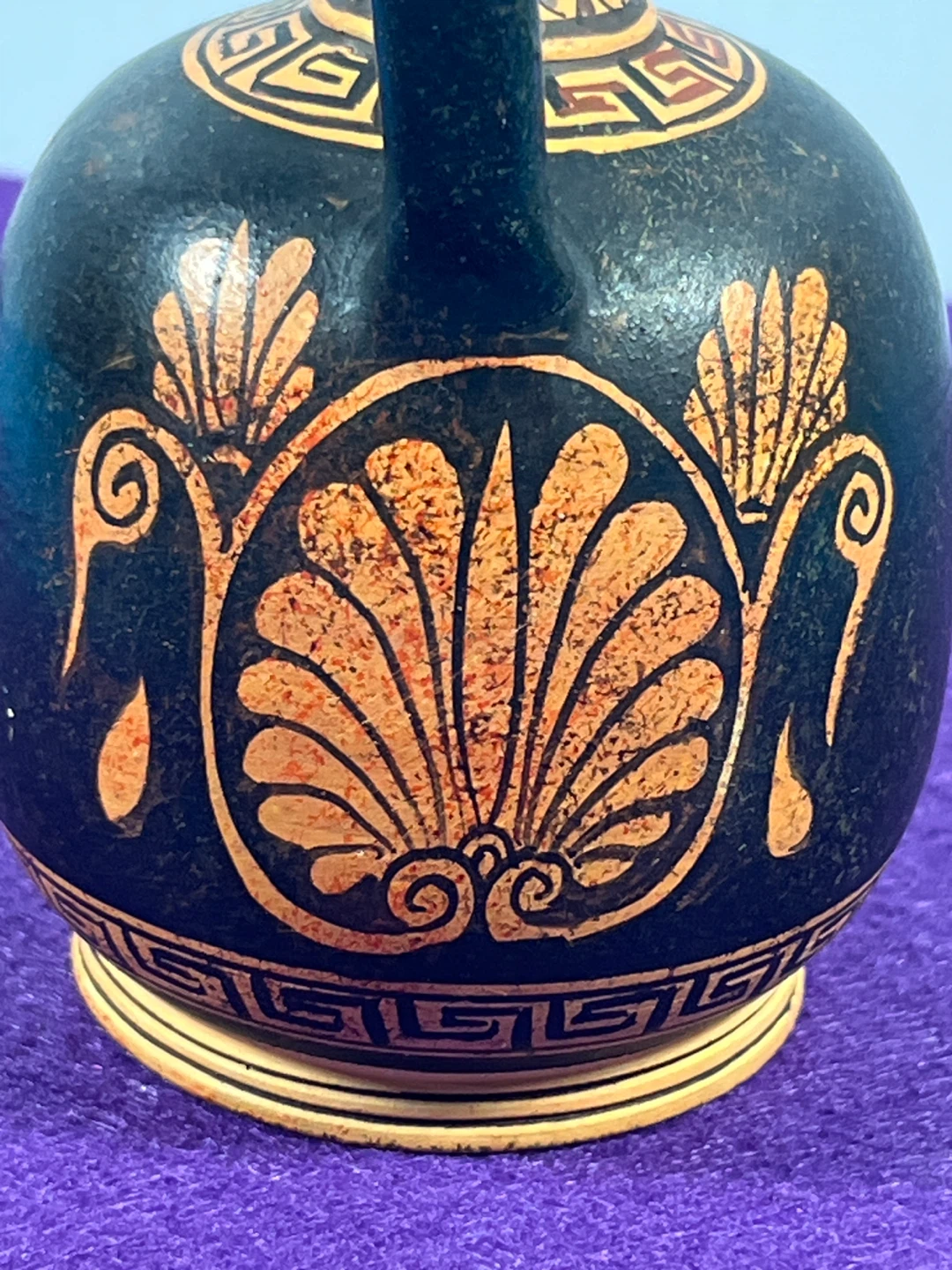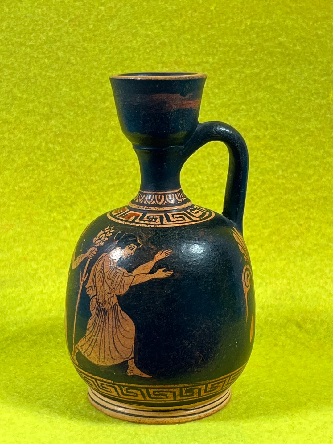 This object is a modern museum replica of an ancient Athenian vessel, specifically a Red-Figure Aryballos.