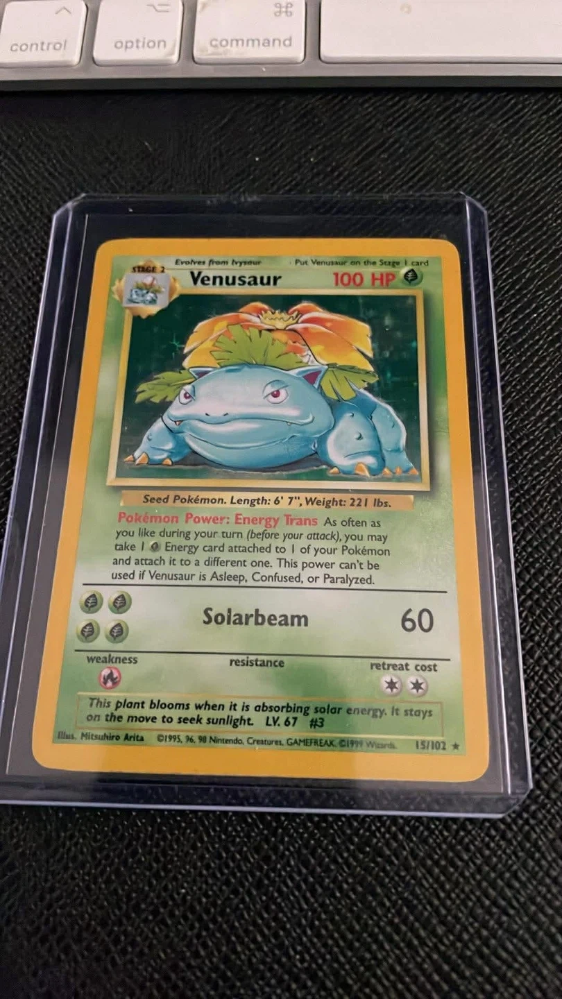 Buy & SellBase set unlimited venusaur.Base set unlimited venusaur.$190One of the original starters from a 1999 year Pokemon set a true piece of Pokemon history.ConditionLike newWHERE TO MEETCalderView MapSELLERMarkoCalder201 review2 chats·0 favorites·98 viewsSEND CHAT TO SELLERHi Marko! I’m interested in your listing.Hi Marko! I’m interested in your listing.Get the Karrot app to chatSign In to chat