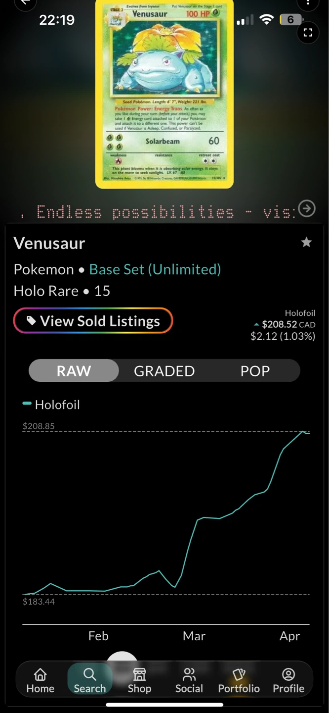 Buy & SellBase set unlimited venusaur.Base set unlimited venusaur.$170One of the original starters from a 1999 year Pokemon set a true piece of Pokemon history.ConditionLike newWHERE TO MEETCalderView MapSELLERMarkoCalder231 review2 chats·1 favorites·148 viewsSEND CHAT TO SELLERHi Marko! I’m interested in your listing.Hi Marko! I’m interested in your listing.Get the Karrot app to chatSign In to chat