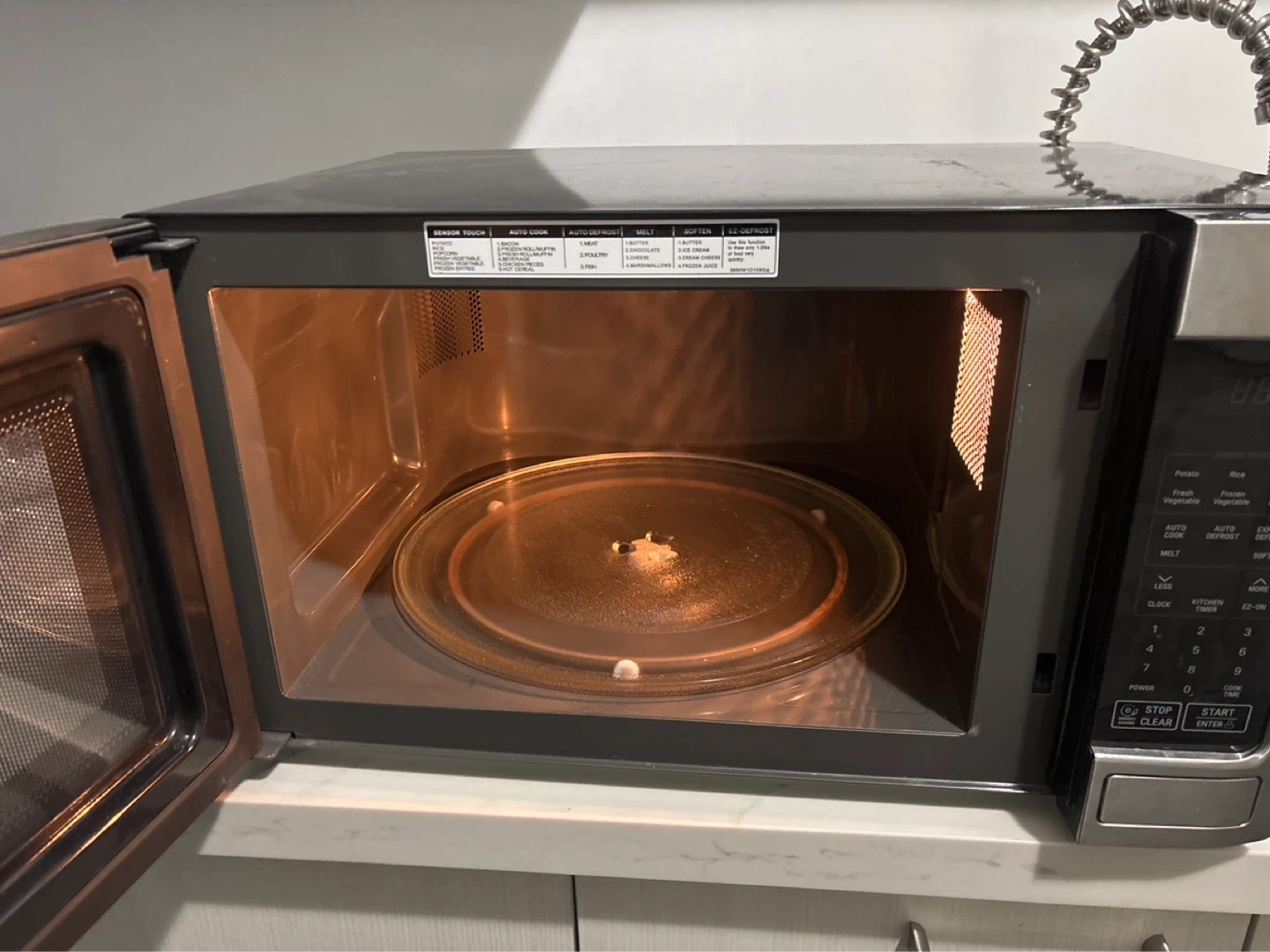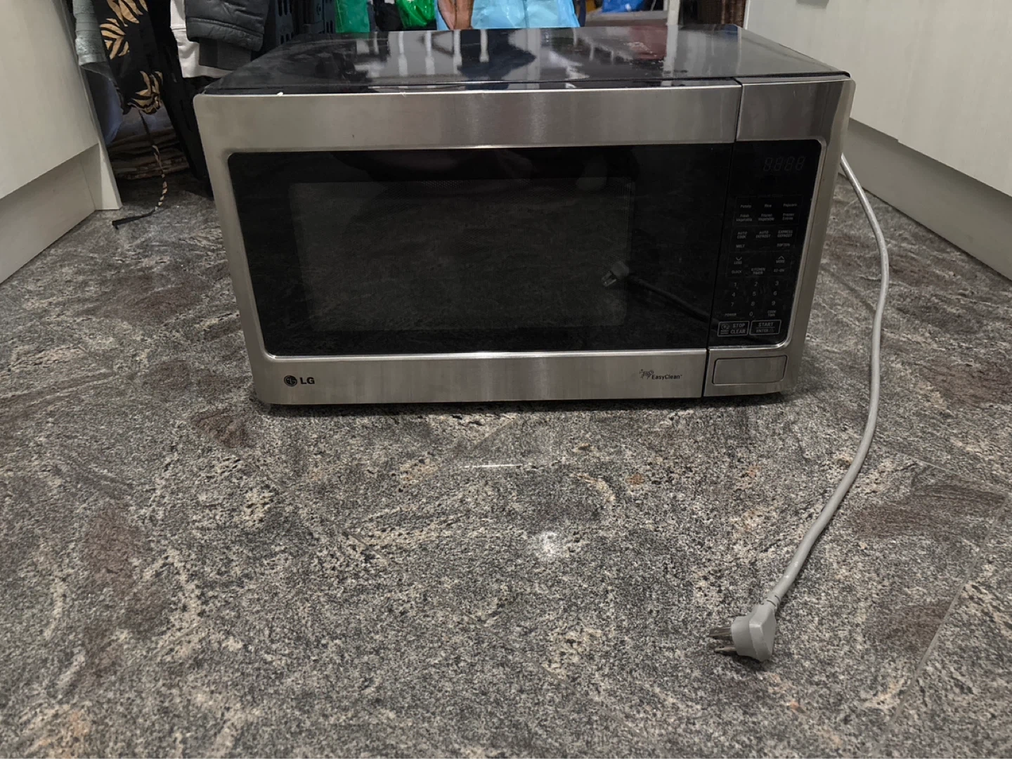 LG stainless steel countertop microwave. Features sensor touch cooking and auto defrost functions. It's a great addition to any kitchen!
