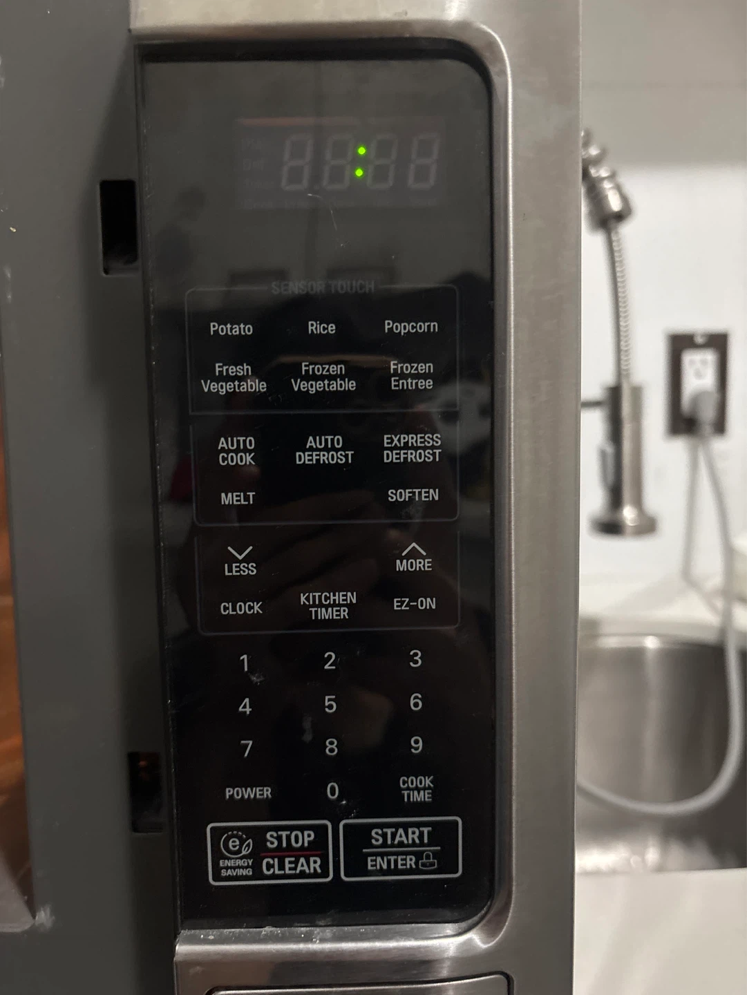 LG stainless steel countertop microwave. Features sensor touch cooking and auto defrost functions. It's a great addition to any kitchen!