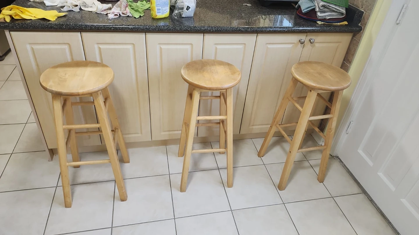 Set of 3 Natural Solid Wood Bar Stools - 29" Counter Height