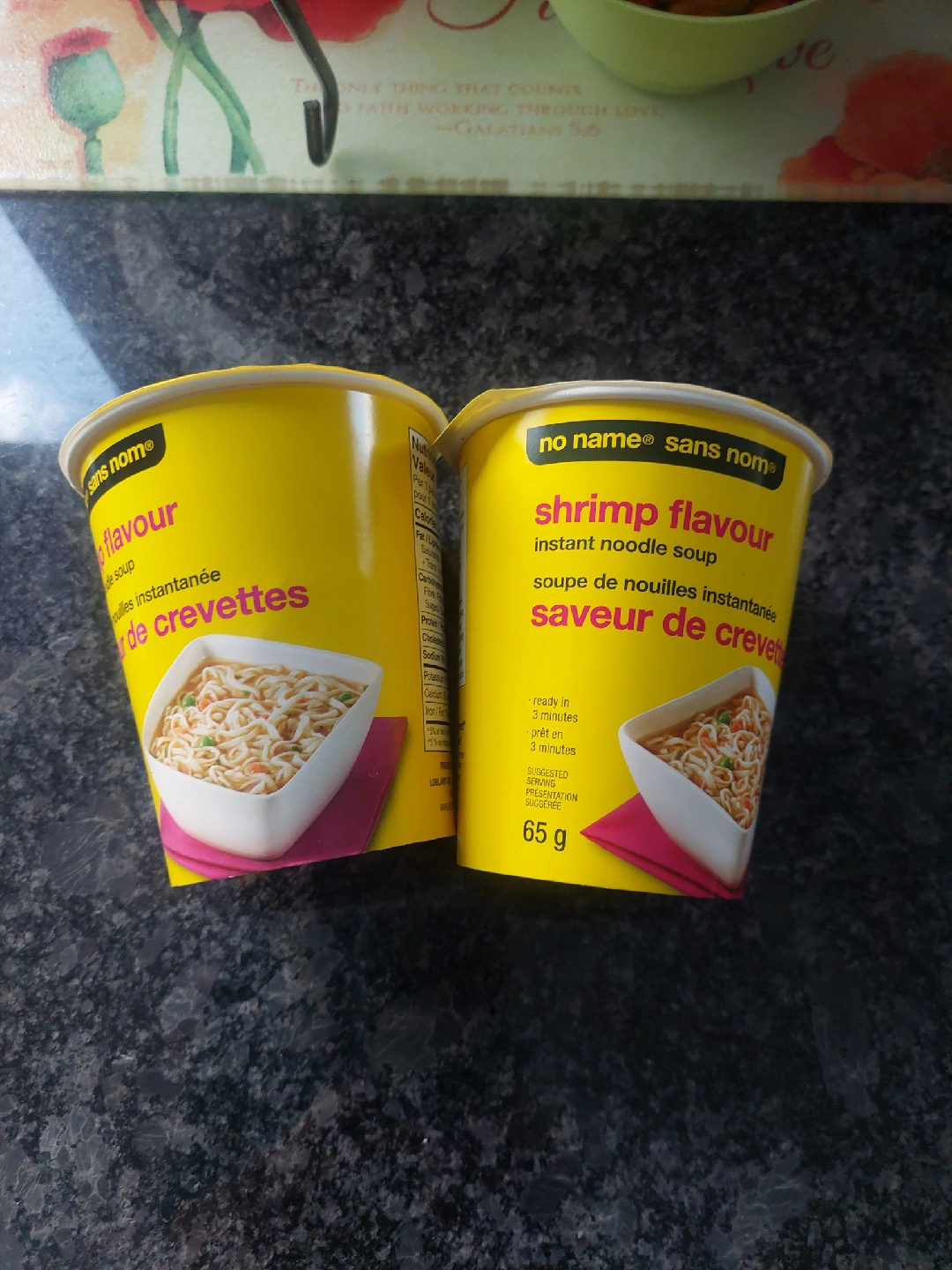 1000+Two no name shrimp flavour instant noodle soup. Expiration Date: 2025 December 24 Ready in 3 minutes 65 g per package Please take a look at my other items. Discount applies on multiple purchases.
