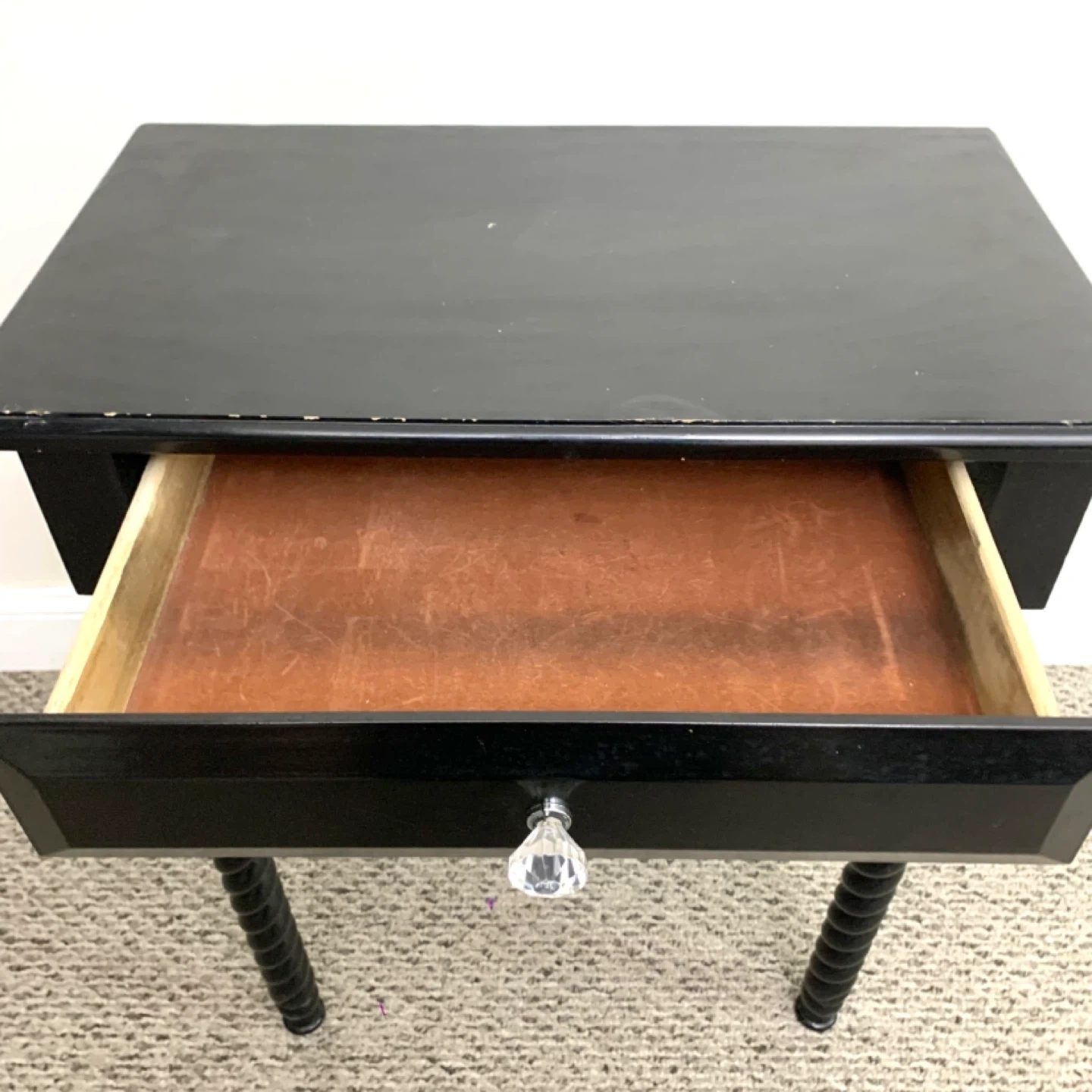 Black accent table side table wood furniture – compact end table with single drawer, twisted wooden legs, and crystal-style knob. Perfect for living room, bedroom, or hallway. Great for small spaces as a nightstand, sofa side table, or decorative piece while adding storage and style.
