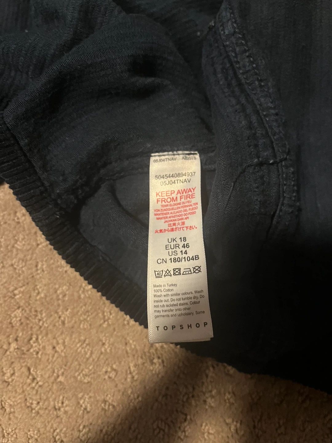 Topshop corduroy jacket in a dark navy colour. It's a size US 14